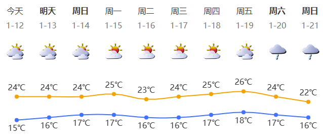 深圳天氣十天預報。深圳市氣象台1月12日5:20更新