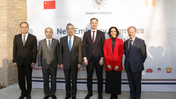 2024年1月11日,中共中央政治局委員、外交部長王毅在北京同比利時外交大臣拉比卜共同為比駐華使館新館揭牌。正在訪華的比首相得克羅出席揭牌儀式。