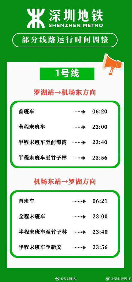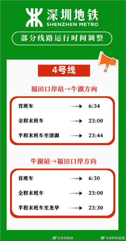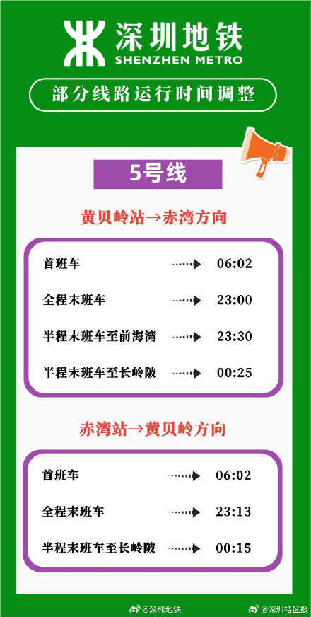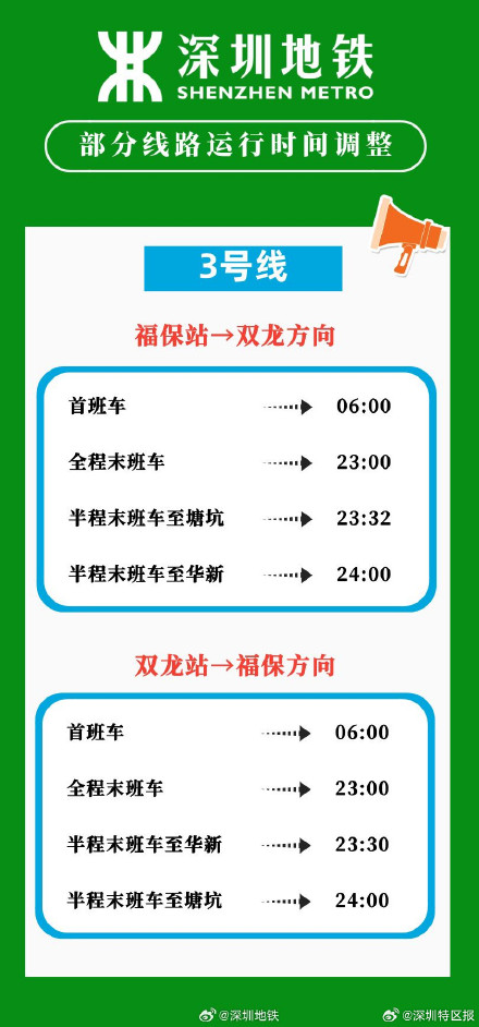 2024年春運將於1月26日開始,為全力「備戰」春運,做好設備檢修維保和運營服務組織,深圳地鐵將於本周五(1月19日)起,暫停1、3、5號線及港鐵深圳4號線工作日周五延時收車安排,相關末班車時刻見下圖,同時,為滿足春運及春節期間廣大市民的出行需求,深圳地鐵正在制定春運延長運營服務方案,請市民留意深圳地鐵官方信息發布,提前做好出行安排。