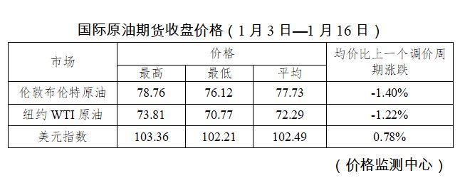 據國家發展改革委價格監測中心監測,本輪成品油調價周期內(1月3日-1月16日)國際油價在震盪中小幅下降。平均來看,倫敦布倫特、紐約WTI油價比上輪調價周期下跌1.31%。