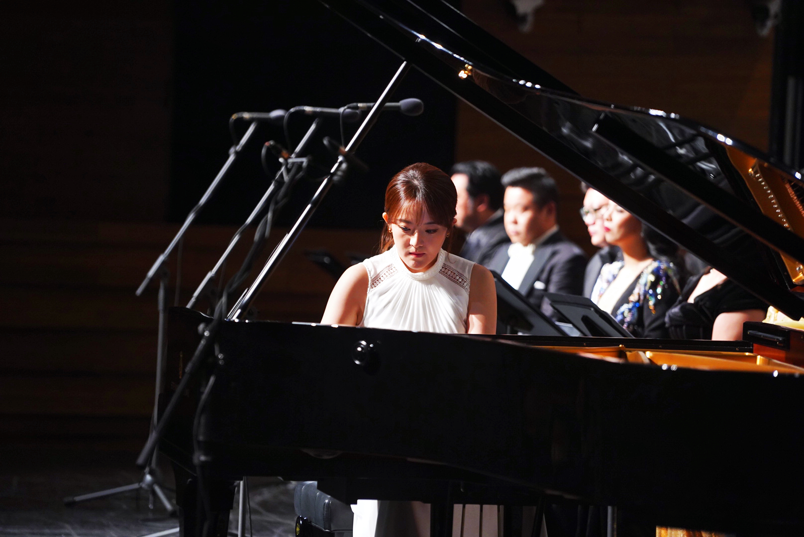 音樂會上半場,在充滿莊嚴氣息和舒緩節奏的《c小調合唱幻想曲》中拉開序幕。這是貝多芬創作成熟時期重要作品,被稱為「通向第九交響曲的橋樑」,巧妙地融合了鋼琴、人聲和管弦樂,鋼琴獨奏的序曲發人深思,樂器合奏交相輝映,合唱的融入將演出推向第一個高潮,讓觀眾深刻體驗到了音樂的豐富內涵,帶來非凡的視聽享受。