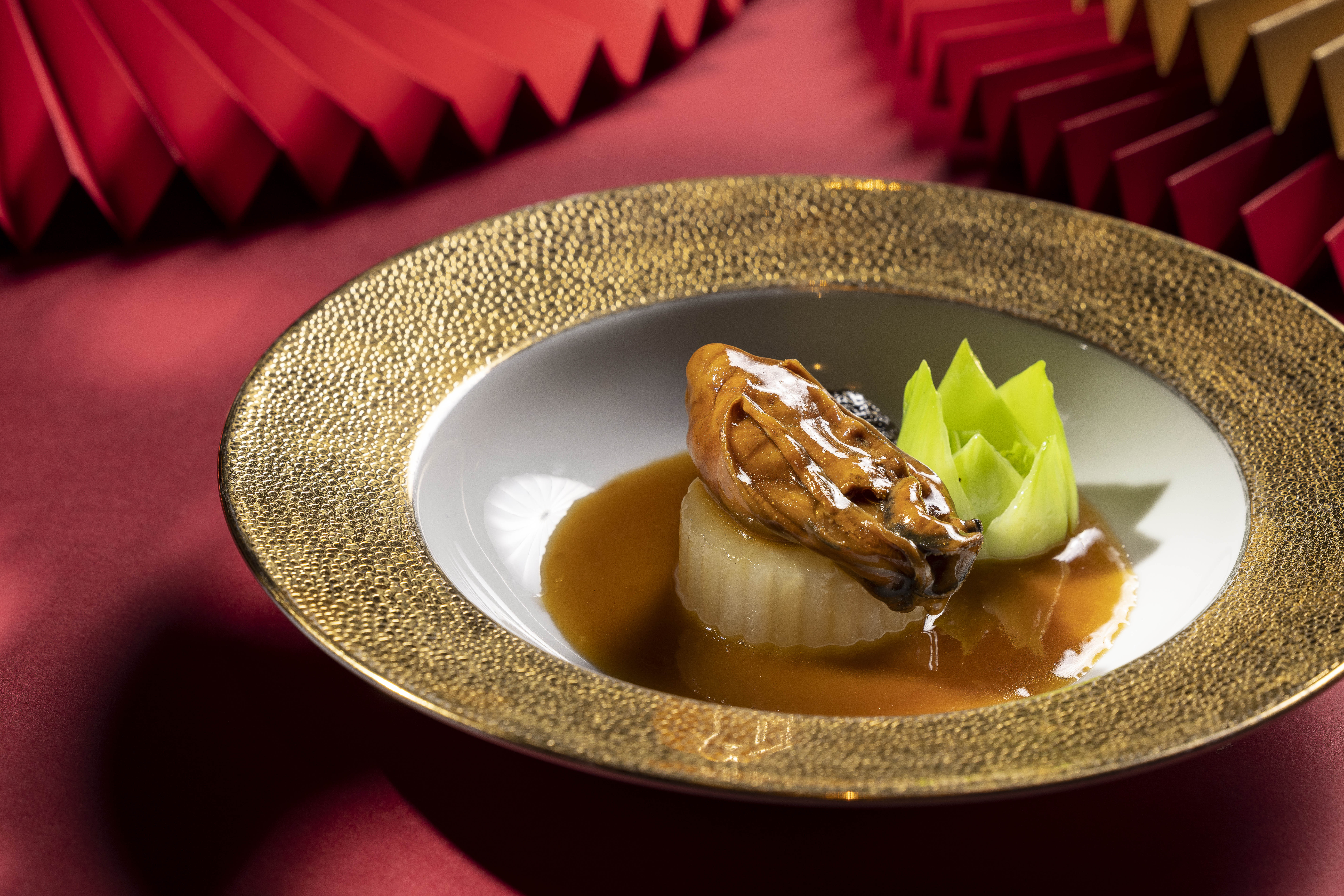 傳統喜慶佳餚離不開鮑參翅肚,帝逸酒店逸軒中餐廳由即日起至2月24日推出「春茗賀歲套餐」,帶來多道意頭十足的喜慶菜。套餐由富貴一品拼打頭陣,大廚選用來自匈牙利的鬈毛豬脢頭肉製作成叉燒皇,先醃後掛糖燒製再厚切而成,叉燒亮麗富光澤,外皮帶點焦脆,肉厚香甜;富滬風的毛豆烤麩散發濃郁醬香,口感清新爽脆;蜜餞金蠔每一隻均飽滿肉厚,甘香惹味。此開胃前菜寓意金銀滿屋、財源滾滾來。大廚並選用「四大海味」之首的鮑魚配以肉厚鵝掌燜煮成紅燒八頭鮑魚伴高湯鵝掌,淋上秘製醬汁,寓意打工仔平步青雲。雞是粵菜大時大節必有的菜式,松露蔥油脆皮雞以雞肉配上秘製蔥油與松露,香氣馥郁,齒頰留香。