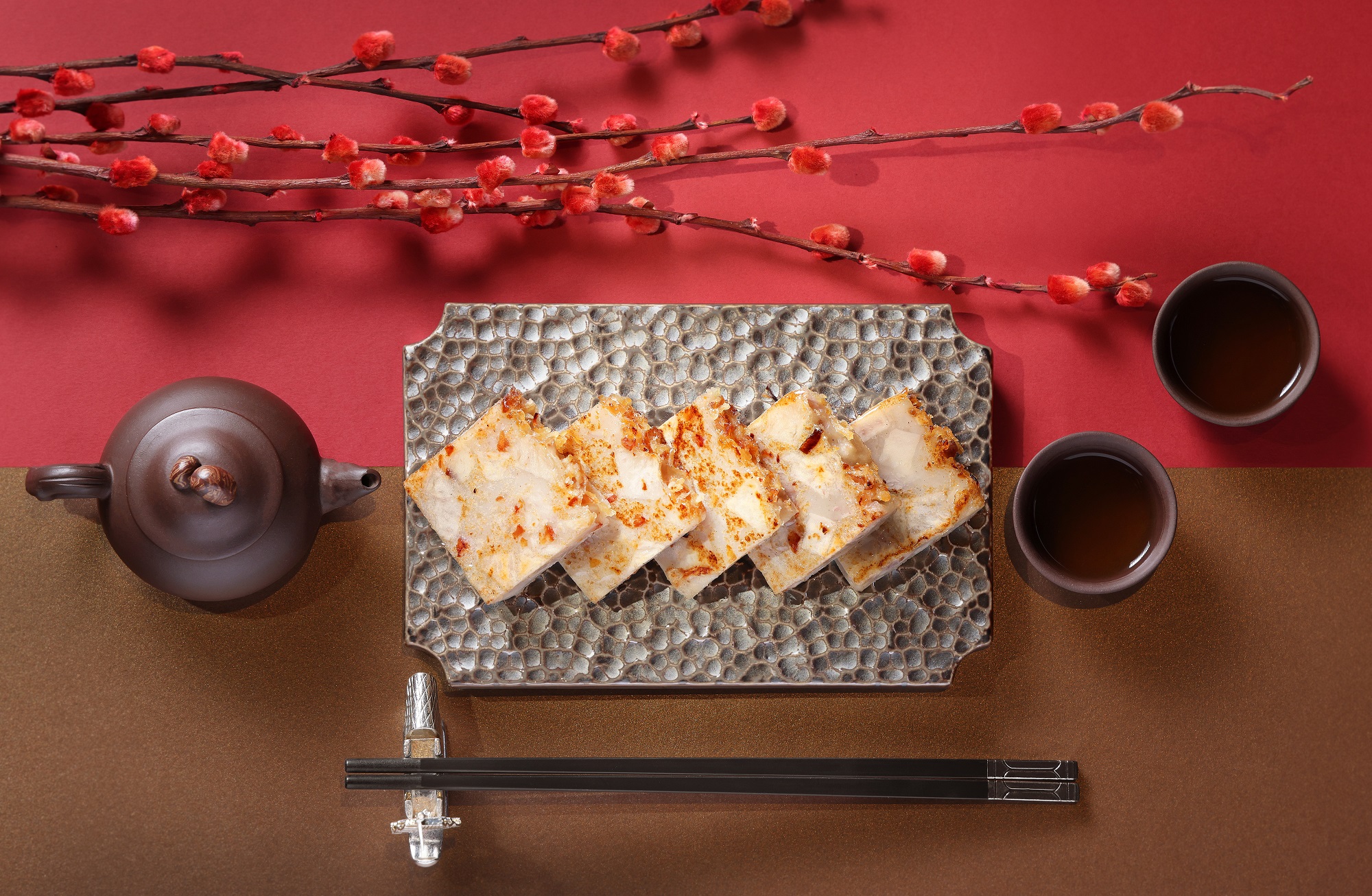 「招財進寶」蘿蔔糕 HK$468,加入鹹咸香臘味及瑤柱。