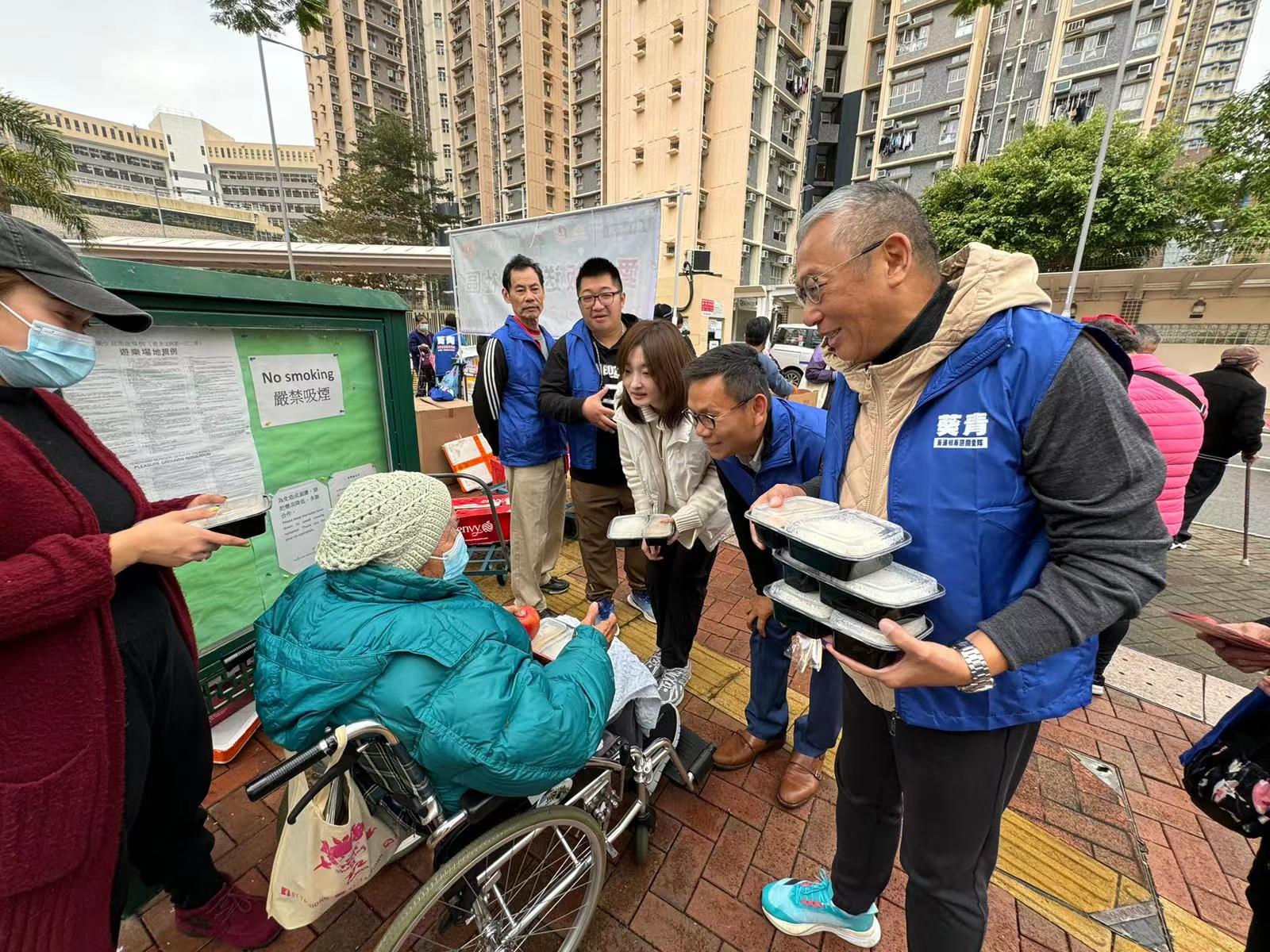 葵涌南邨小區關愛隊聯同諧樂康社(葵盛西)及葵涌居民促進會籌集300個飯盒,並組織區內義工聯同新界西南立法會議員陳恒鑌、葵青區議員伍志華與郭慧敏,於今日(30日)探訪區內有需要居民,尤其獨居及雙老長者,送上愛心飯盒、賀年禮物與福袋,加強他們的防騙意識。