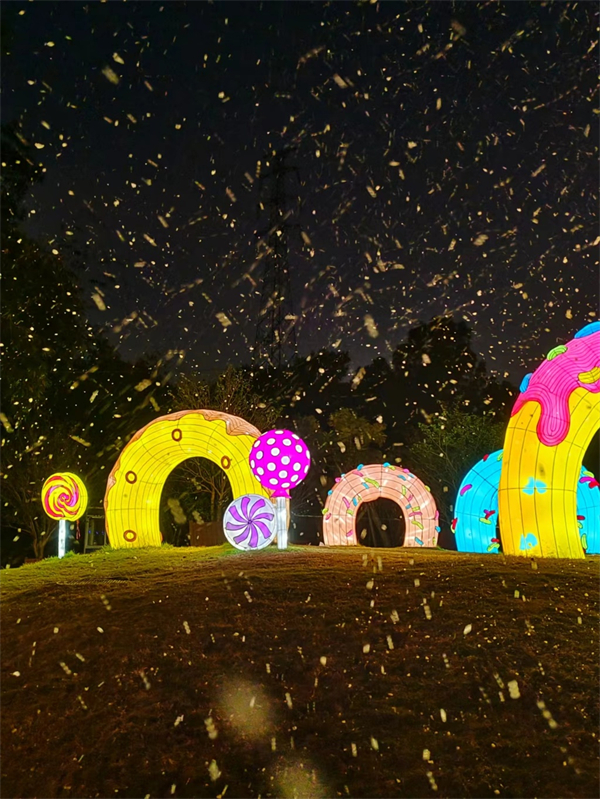 春節假期,甘坑古鎮以田園生活為核心,深挖農耕文化,在小涼帽農場舉行親近大自然的「開年趣味尋寶營」,以挖土豆、九宮格飛盤、憤怒的小鳥、桌上冰壺、長筷子夾娃娃、彩繪涼帽等六大體驗項目,邀遊客回歸大自然,重新貼近鄉野,共赴一趟充滿着農耕樂趣的尋寶之旅,記錄下共度新春佳節的美好瞬間。除了上新日場體驗項目,當夜幕降臨時,古鎮及農場都被流光溢彩的燈光喚醒,夜場的主題彩燈裝置再升級,圍繞客韻新年,將小涼帽農場的自然田園風光與奇幻酷炫的光影藝術相結合,打造甘坑奇幻夜2.0版本——「龍游界涇 煙火甘坑」主題燈展,新增下雪機及激光秀,以絢爛又浪漫的彩燈光影,描繪出田園野趣版的撩人景色,開啟奇幻浪漫的遊園之夜。