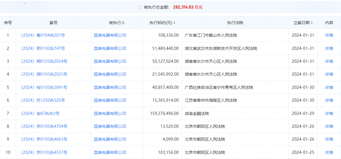 截至目前,國美電器有限公司累計被執行金額已超28億元。