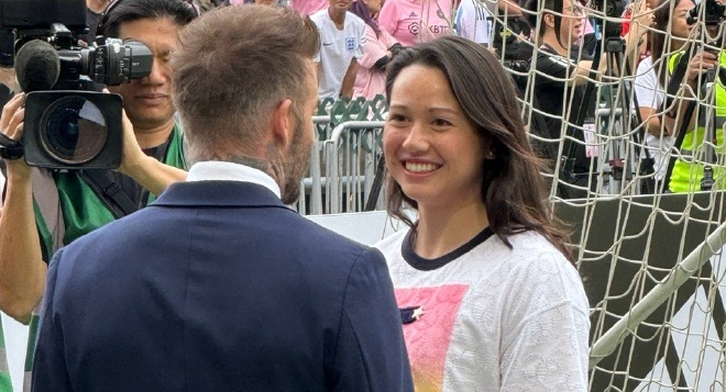 阿根廷球王美斯領軍的國際邁阿密今日(4日)下午4時在香港大球場與港隊踢表演賽。國際邁阿密班主之一的「萬人迷」碧咸在賽前表演環節擔任主禮嘉賓。表演賽吸引不少知名人士捧場。