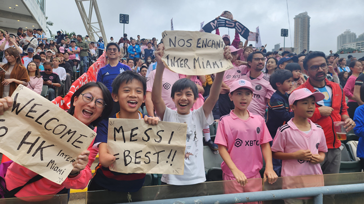 萬眾矚目的國際邁阿密,和香港隊的表演賽正在大球場火熱上演,入場的觀眾大部分都穿着粉紅色的球衣,今天的安保比昨天嚴厲,入場之前都要經過安檢,水一律不準帶進去,很多人都不知道,要在門口寄放水壺。多圖放送↓
