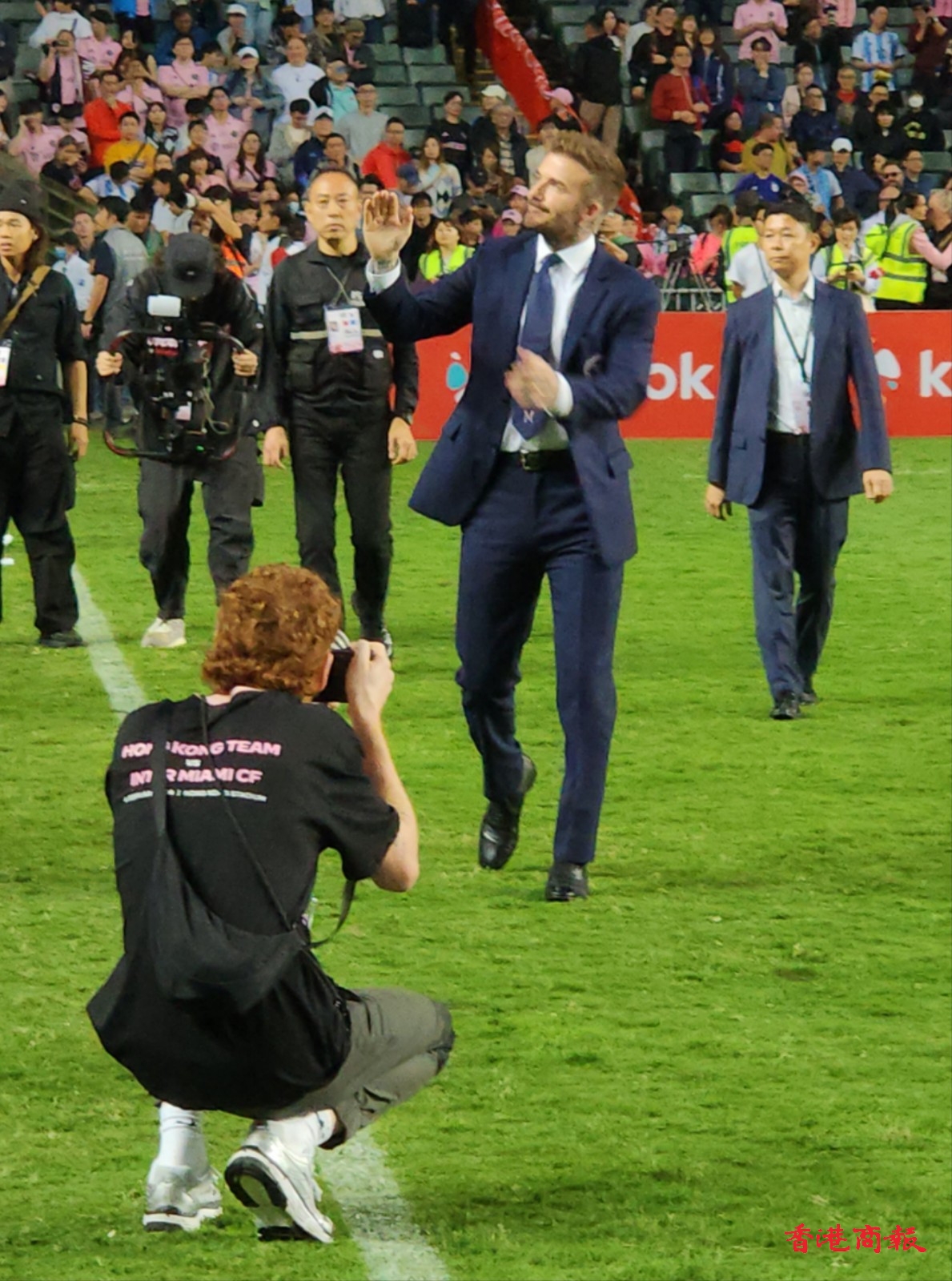 今天大球場的比賽,球王美斯沒有出場,讓大家很是失望,活動結束之後,不少球迷還留在現場鼓噪,班主碧咸特意折回球場,走近觀眾席,向球迷們揮手致意,球迷的情緒立馬受到了安撫,哄得大家很是開心,真不愧是萬人迷。