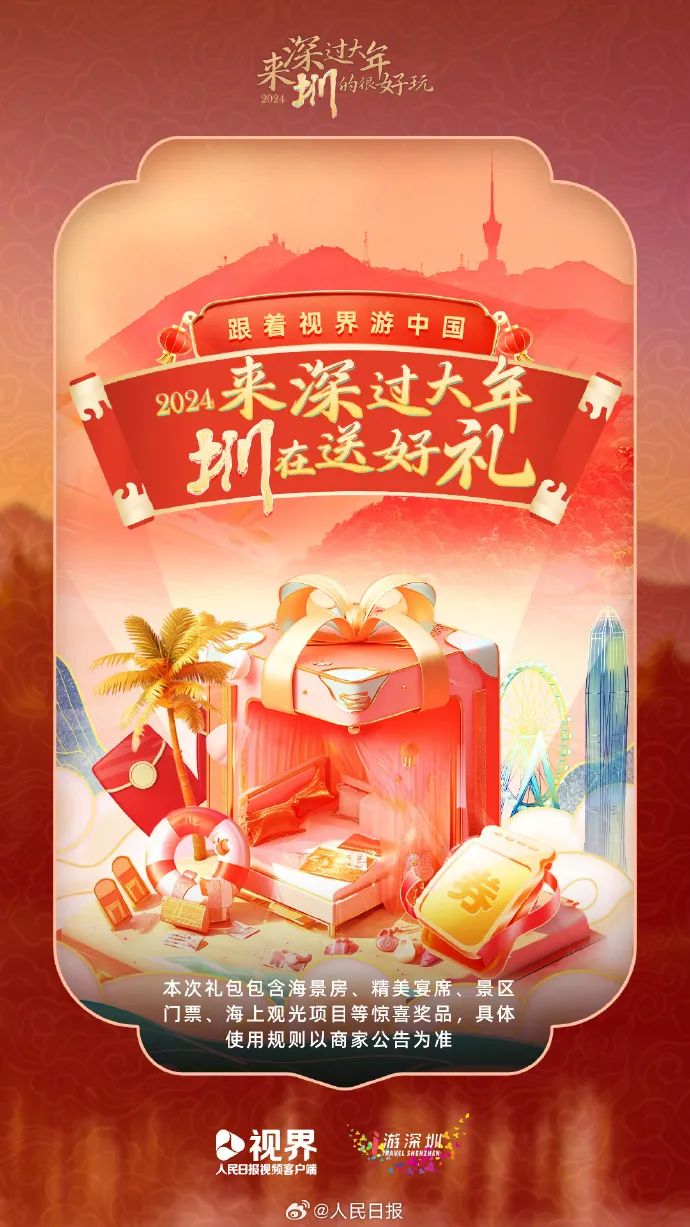 且慢,「i游深圳」官方還聯合人民日報在微博及視界APP發起「來深過大年 圳在送好禮」抽獎活動,抽取一位幸運網友專享價值超萬元大禮。