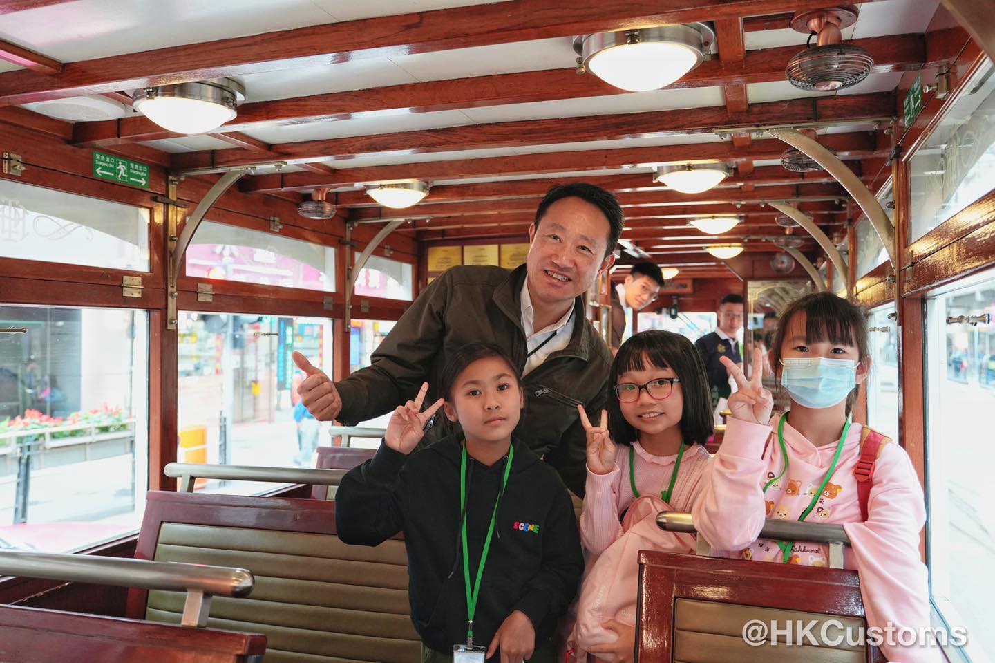 頂圖:海關義工隊帶小朋友登開蓬電車暢遊港島,發掘香港有趣景點。香港海關fb