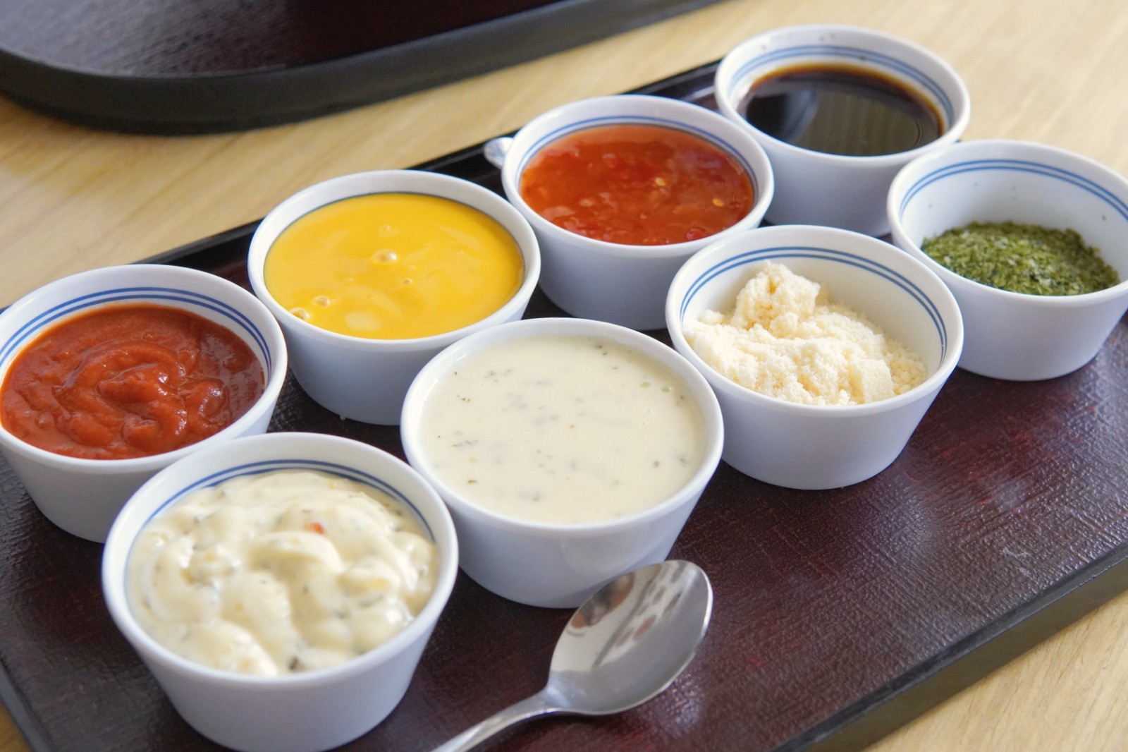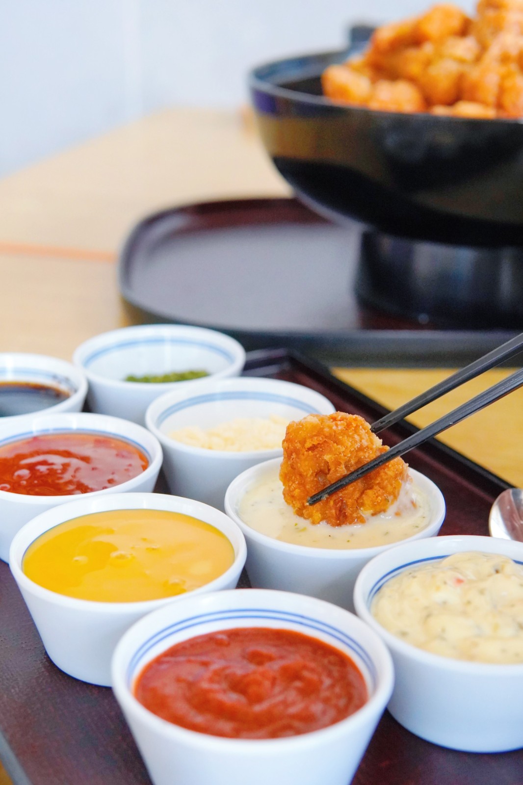 8款醬汁包括經典的南蠻汁、他他醬、蜜糖芥末醬、特調南蠻他他汁、泰式雞醬、薄餅醬、芝士粉及海苔。