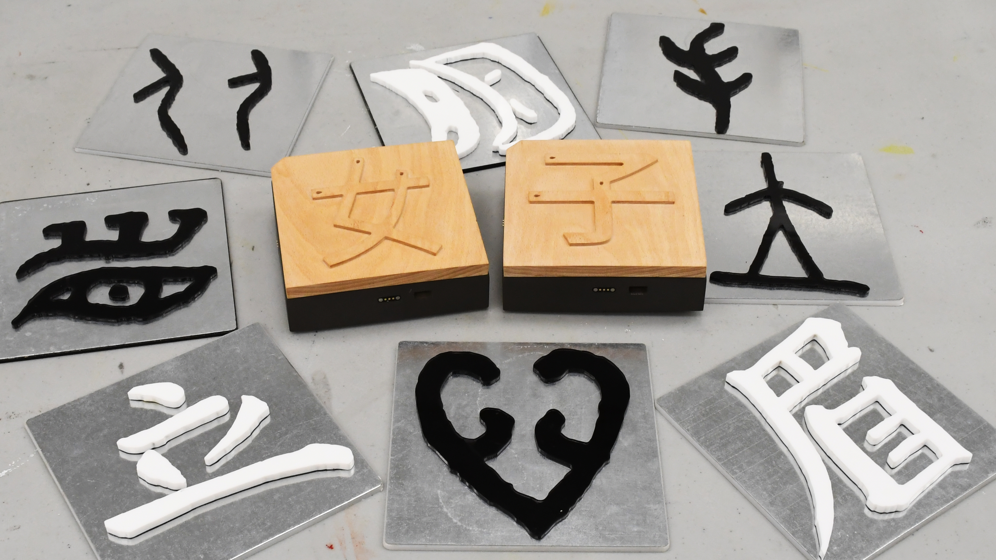 「拼木發聲來識字」是一組多感官學習套件,用家可觸摸獨立發聲的部首套件,亦可將不同套件互相組接,產生新字符。系統與電腦相連,一旦正確組接「形部」與「聲部」,電腦連接評議程式便會發出相應字符的聲音。部首模塊由3D打印製成,連同觸覺和聽覺組件一同呈現,通過觸摸和聆聽,用家可以了解漢字的組成結構,並同時欣賞漢字書法藝術。