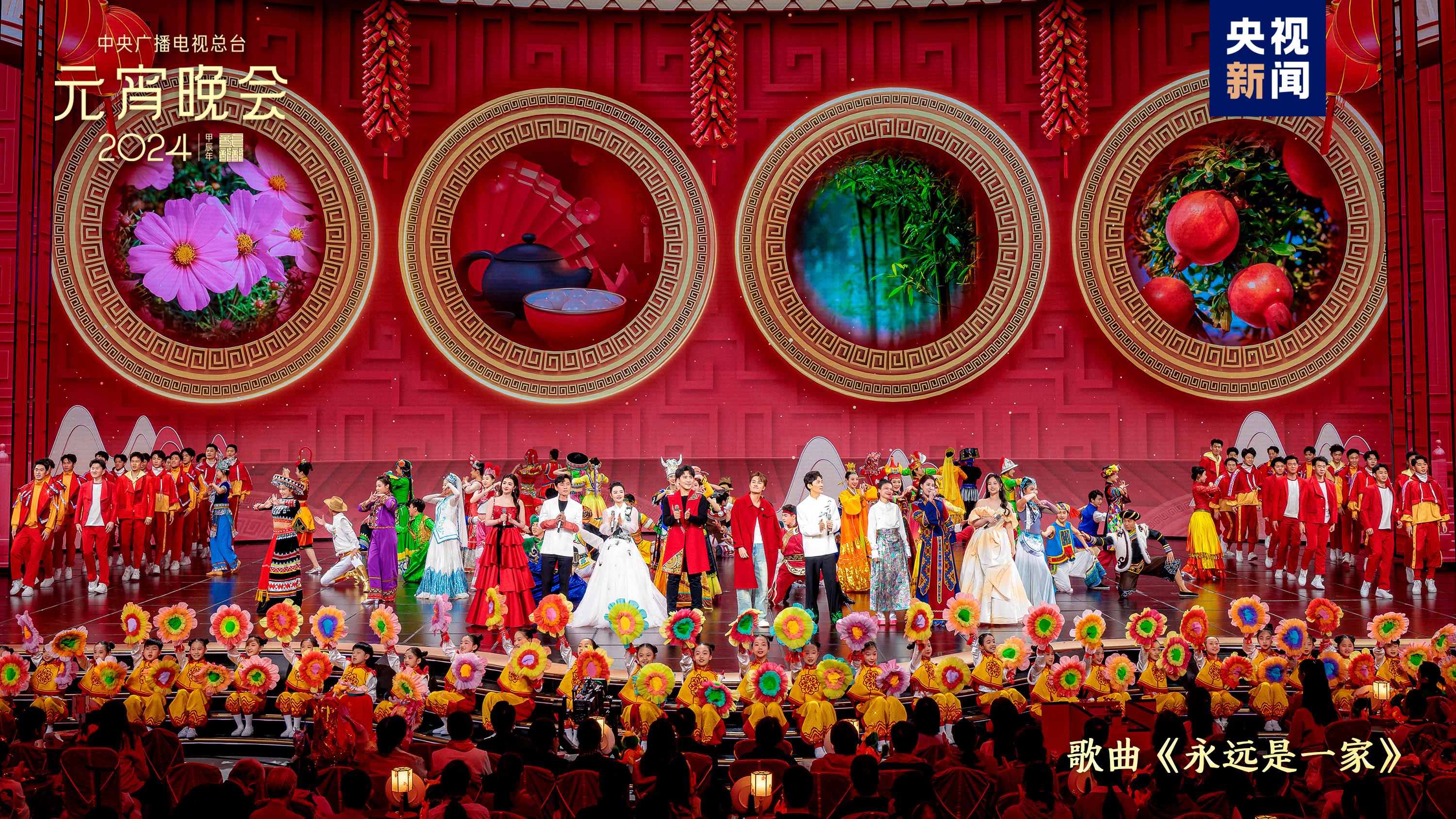 歡聚一堂,共赴喜慶團圓的聯歡。今年總台春晚主會場和四地分會場的十三位主持人齊聚元宵晚會舞台,以趣味猜燈謎串聯起整台晚會,為觀眾送上和美甜蜜的祝福。遼寧瀋陽分會場帶來表演《團圓暖冬》,濃郁的「東北味兒」帶來北國之城的熱鬧歡騰;湖南長沙分會場以長沙出土的唐瓷詩文執壺創作《春生瀟湘》,以曼妙春聲唱萬物春生,別具「湘式浪漫」;陝西西安分會場的《萬象長安》,以一輪圓月作串聯,重現流光溢彩的上元燈會;新疆喀什分會場繼續歡歌起舞,在《爺爺的薩瑪瓦爾》中展示美好生活。四地分會場張燈結綵、遙相輝映,共慶團圓。