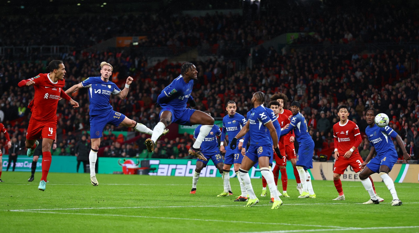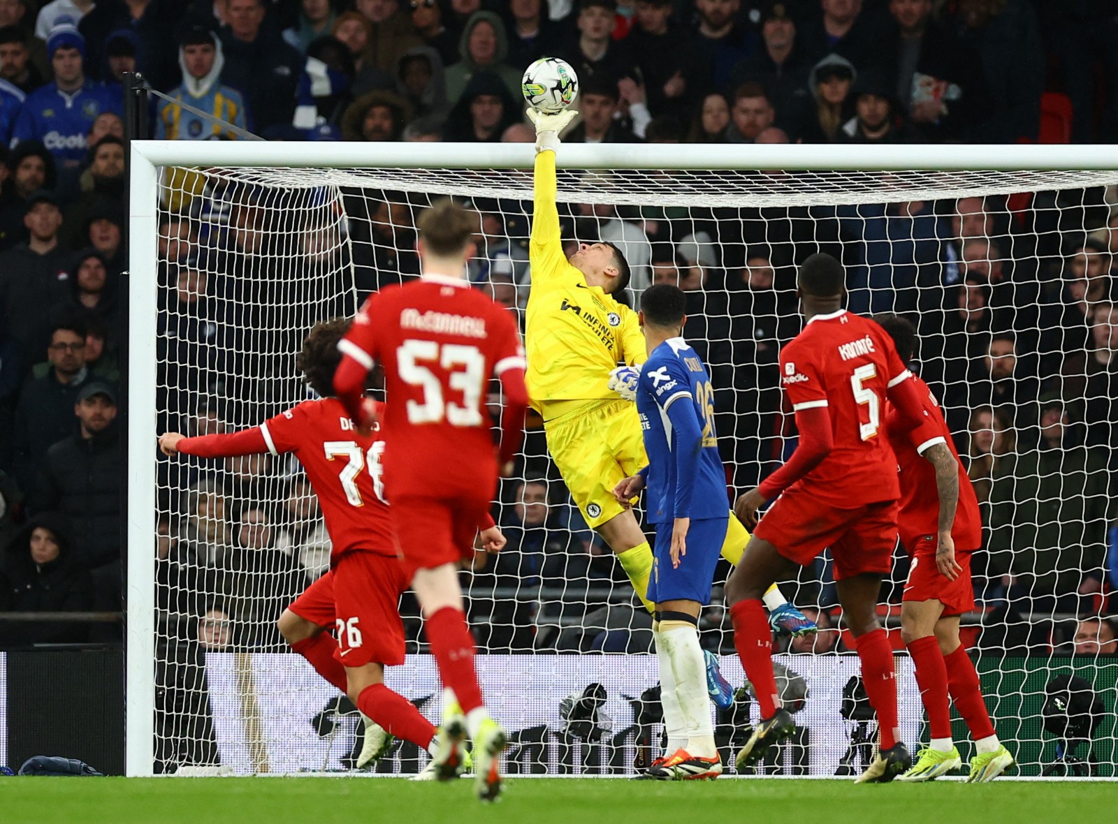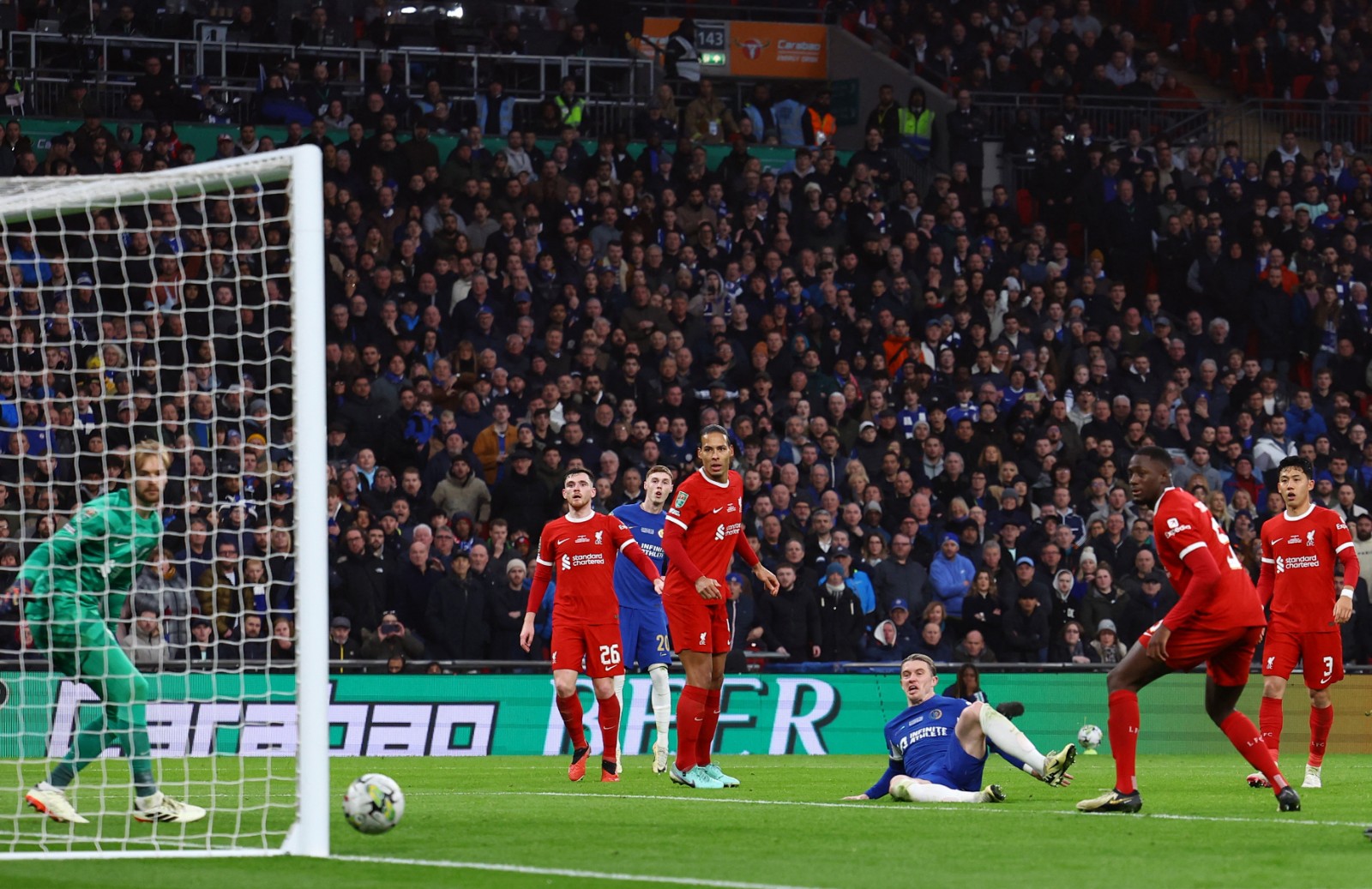 利物浦傷兵滿營,艾利臣比加、阿歷山大阿諾特、穆罕默德沙拿及達雲紐尼斯等多名主力都未能披甲;相反,車路士就是強兵盡出,史達寧、高爾彭馬及安素費南迪斯等主力都可正選列陣。車仔上半場有史達寧近射破門,不過助攻的尼高拉斯積遜越位在先,入球無效。紅軍亦有入球機會,可惜加普的頭槌攻門中柱彈出,雙方上半場互交白卷。