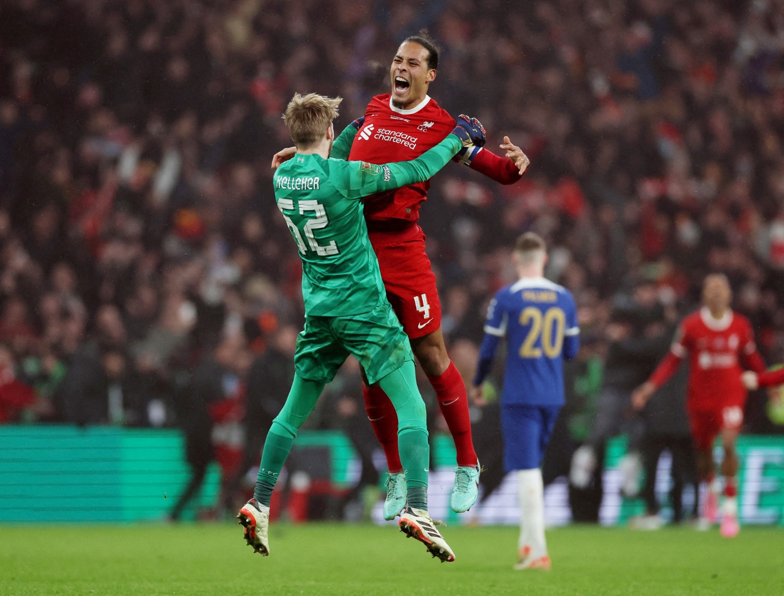 易邊後59分鐘,紅軍有華基爾雲迪積克頭槌頂入,不過球證翻看VAR後,裁定入球無效,皆因處於越位的隊友遠藤航阻了車仔的高維防守。76分鐘,車仔進行反擊,只是干拿加歷查的射門同樣中柱彈出,兩軍90分鐘打成0比0平手,須加時決勝。