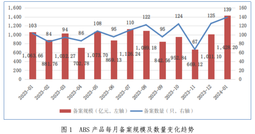 截至2024年1月底,存續企業資產證券化產品2313隻,存續規模19730.36億元,存續規模較上月增長2.56%。