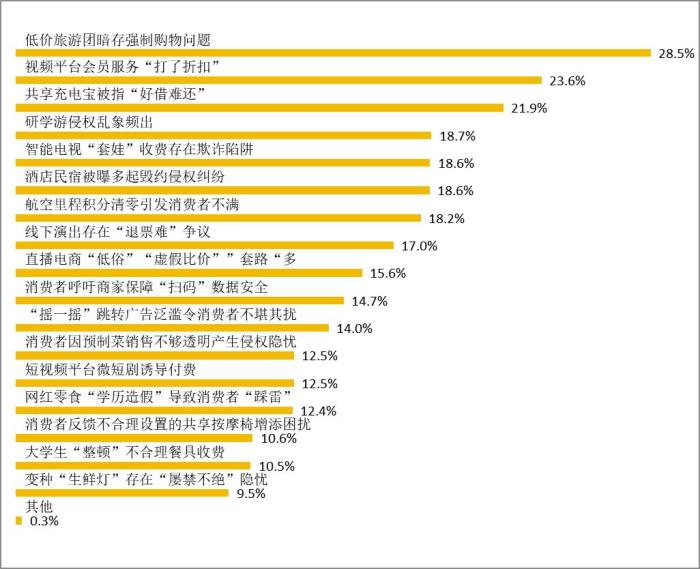 調查數據還表明,當前我國消費環境建設取得積極成效。超七成消費者認為消費環境越來越好,對政府有關部門改善消費環境的工作力度表示認可。與此同時,一些薄弱短板和新老問題仍然困擾消費者,個人信息洩露、浪費現象、網絡謠言和預付卡經營者跑路等問題亟待治理,價格虛高、虛假宣傳、貨不對板、售後服務沒保障、損害健康和假冒偽劣現象不容忽視,應當加強治理。