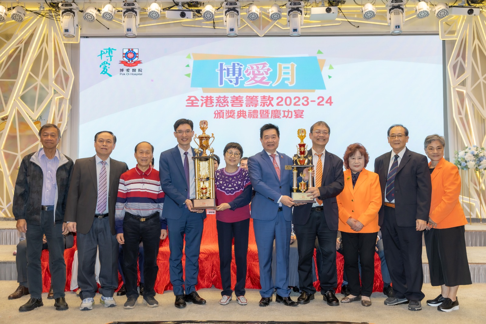 「博愛月2023—24頒獎典禮暨慶功宴」21日尖沙咀The ONE 「煌府婚宴專門店」舉行,今年博愛月活動籌得超過223萬港元,超越去年成績,令人鼓舞。博愛醫院董事局主席陳首銘致辭時承諾,會善用善款,為有需要的市民提供援助。中聯辦新界工作部協調處處長廖銘華、社會福利署署理元朗區福利專員溫綺文、民政事務總署元朗民政事務助理專員高倬煒、聖約翰救傷隊總監蘇平翬醫生擔任主禮嘉賓。