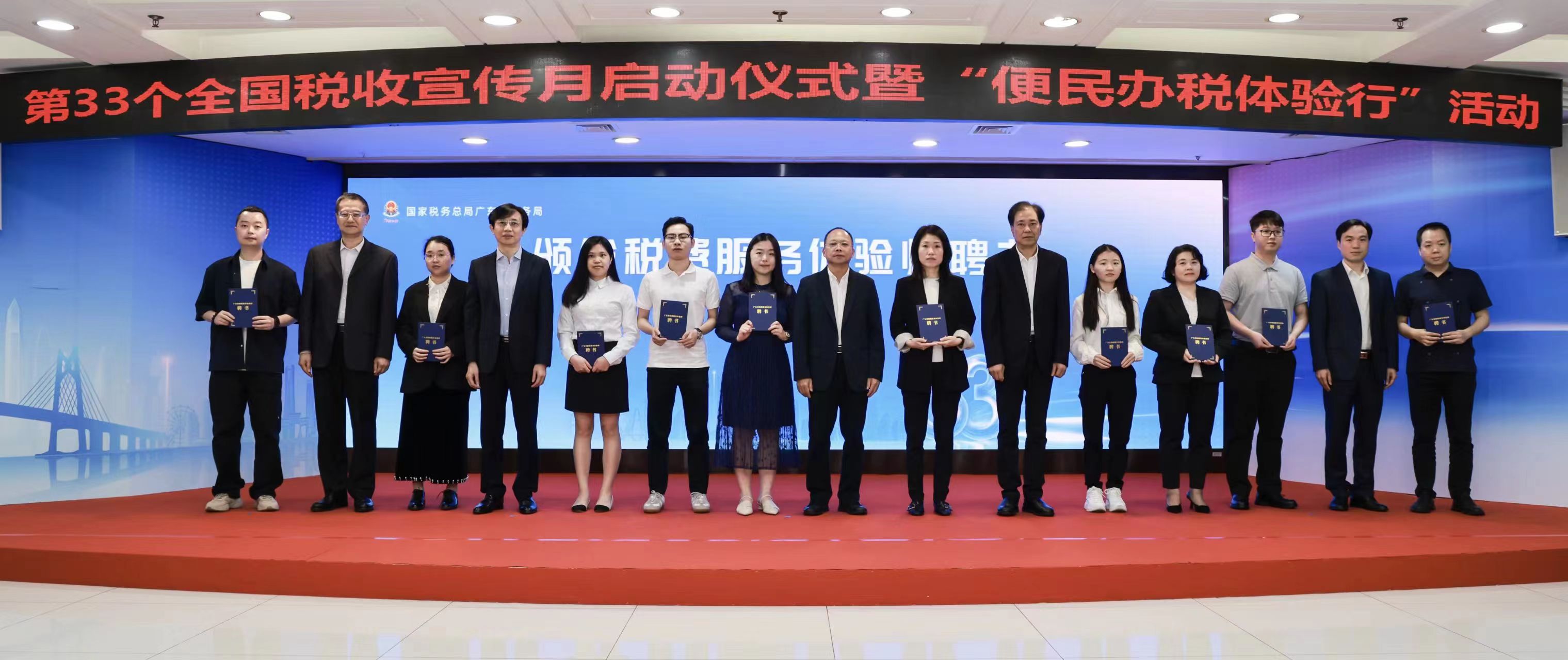 圖為廣東省稅務局為稅費服務體驗師代表頒發聘書。楊迪攝
