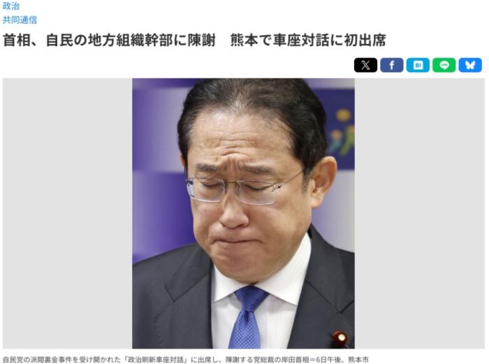 據日本共同社報道,6日,日本首相岸田文雄在熊本市參加自民黨內部討論會時,針對自民黨政治「黑金」醜聞向與會者道歉。
