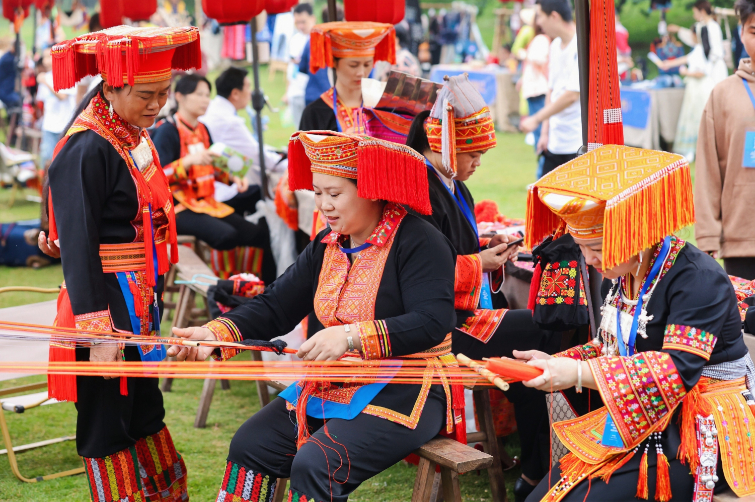 展示+教學,搭建非遺技藝的傳承之橋。「壯美陶器」非遺技藝工坊、「非遺傳藝」研學小課堂,展現着八桂大地各民族的審美情趣和藝術創造。坭興陶製作技藝、壯族織錦技藝、金秀瑤族燈草灸療法、苗族服飾製作技藝、右江壯族麽乜製作技藝等十餘項非遺體驗項目各具特色,讓市民遊客得以與非遺技藝近距離接觸、與非遺傳承人面對面學藝,延伸了非遺活態傳承的更多可能性。
