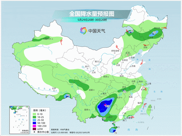 5月30日,雷州半島地區有大到暴雨,其餘南部沿海市縣陣雨局部大雨,內陸地區則以多雲為主,分散性陣雨做客。5月31日至6月1日,廣東中東部市縣更是將迎來大到暴雨,局部地區更可能出現大暴雨,其他地區也將有中到強雷雨,伴有局部暴雨或大暴雨。