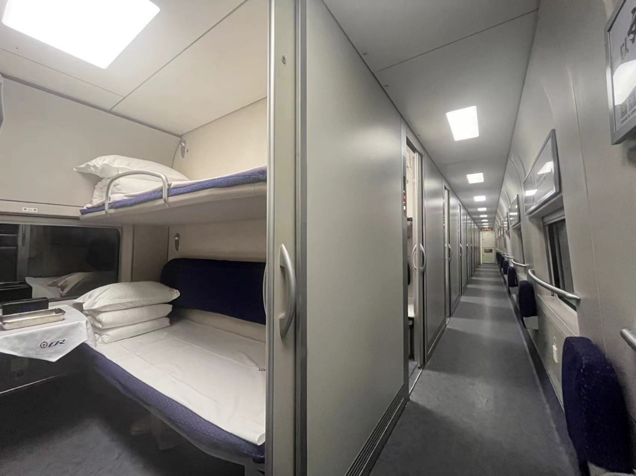 高鐵臥鋪列車除房間內有上下層床鋪,走道上亦有摺椅讓乘客坐。圖:運輸及物流局網頁