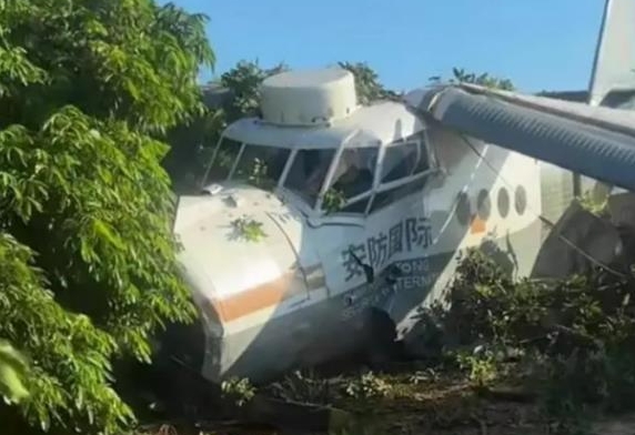 一張飛機失事的照片8日在網上流傳,照片顯示,一架飛機落在樹叢中,機身上寫有「安防國際」字樣。