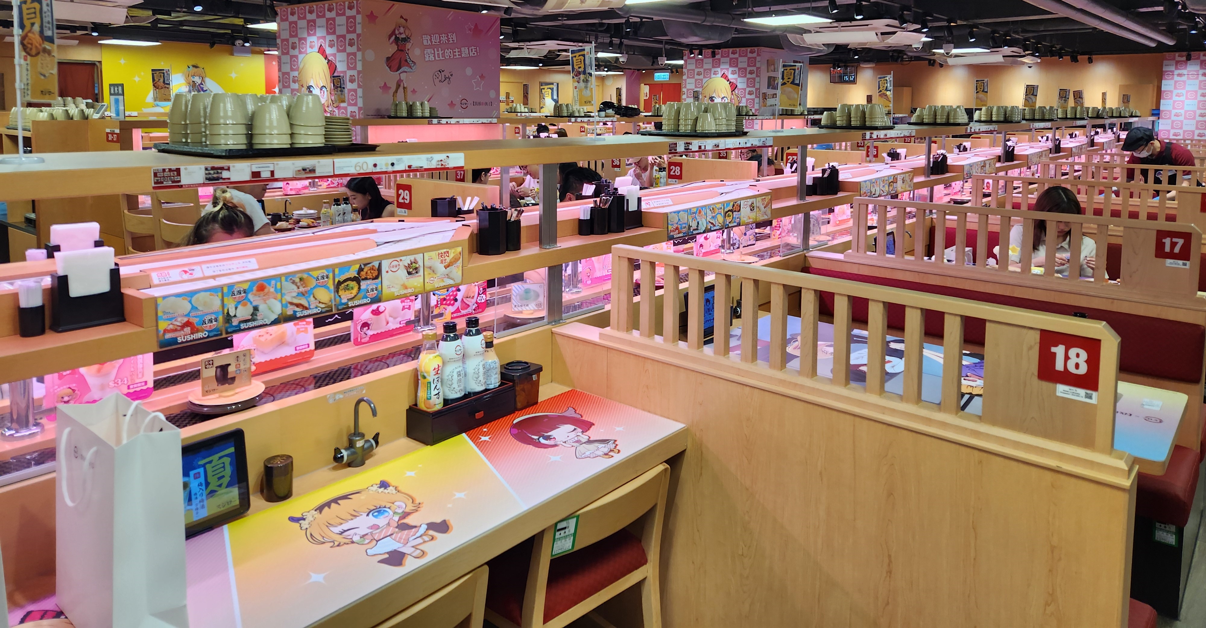 主題店牆身、桌面、輸送帶等均換上角色主題設計。