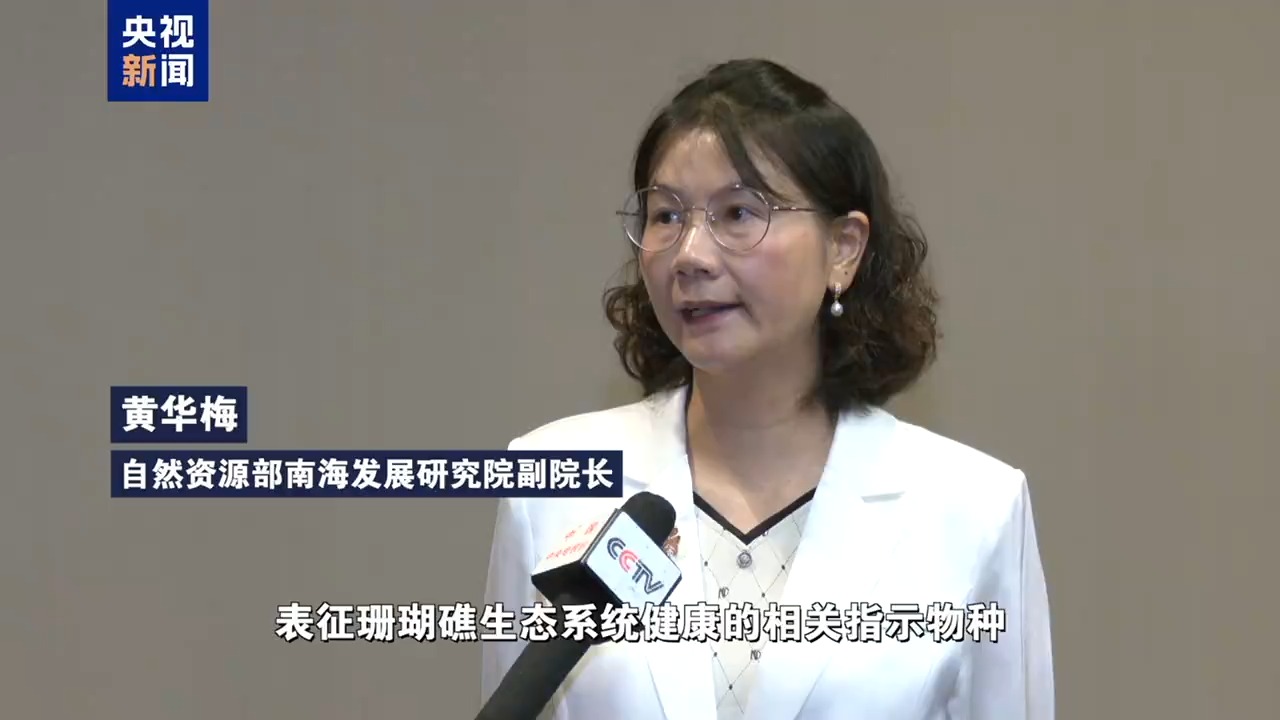 自然資源部南海發展研究院副院長 黃華梅:發現硨磲、唐冠螺等表徵珊瑚礁生態系統健康的相關指示物種,以及綠海龜、玳瑁、長吻原海豚等珍稀生物,礁區關鍵生境指標值處於珊瑚適宜生長範圍。