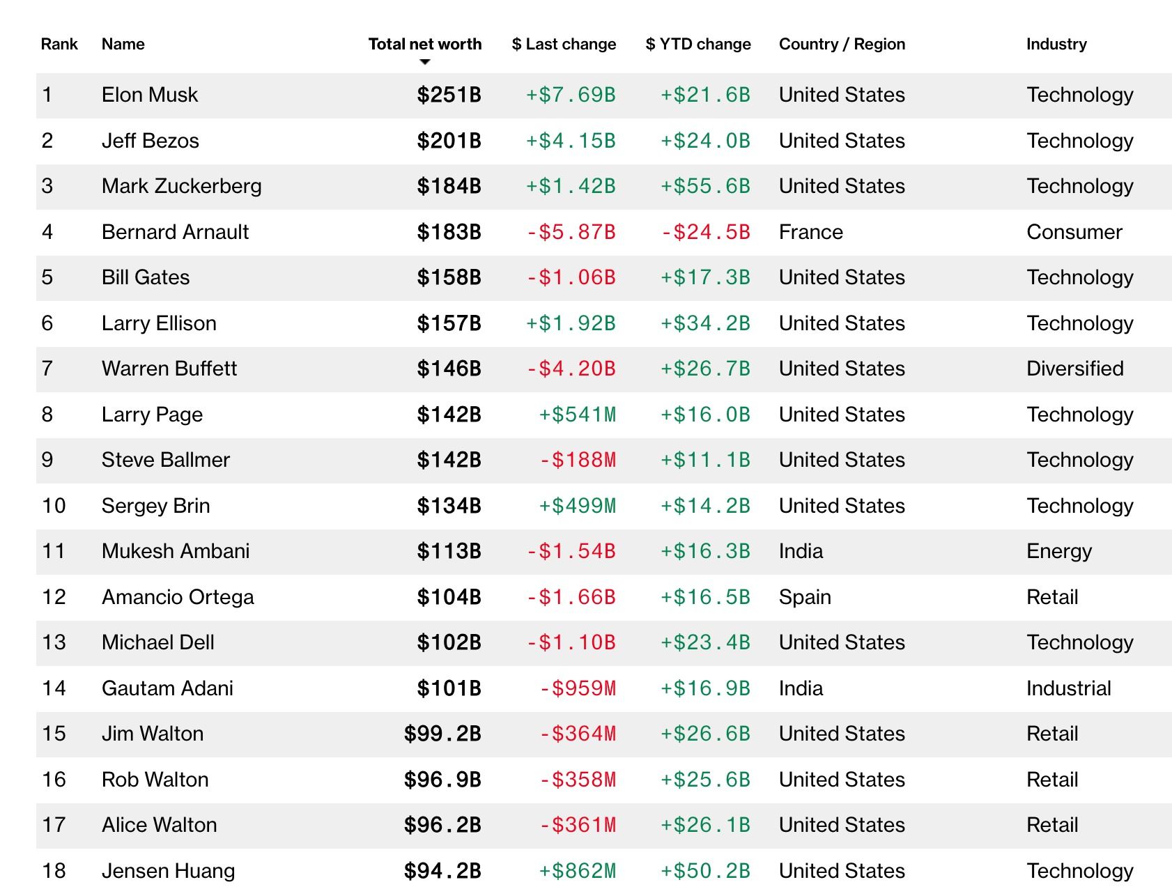 根據彭博億萬富翁指數,黃仁勛當前的個人財富約為942億美元,年初至今增加了約500億美元,使得他在全球富豪榜上排名第18位。