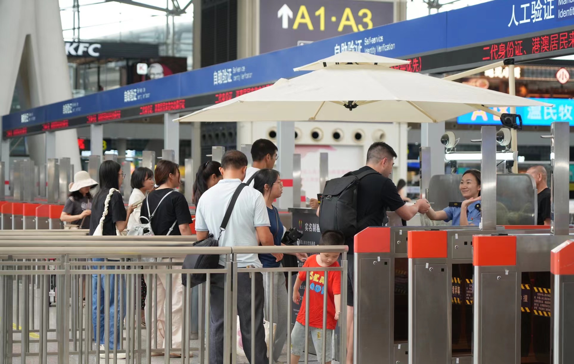 深圳各大火車站組織青年志願者在服務台、進站口、換乘區等重點崗位區域,乘車指引、愛心幫助等服務。其中,深圳北站增加進出站安檢、驗票通道,暢通進出站渠道,讓旅客快進快出。
