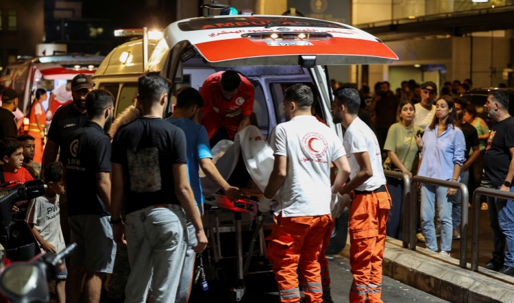 頂圖圖說:當地時間9月17日,黎巴嫩貝魯特,擔架上躺着一名被尋呼機炸傷的男子。圖源 路透社