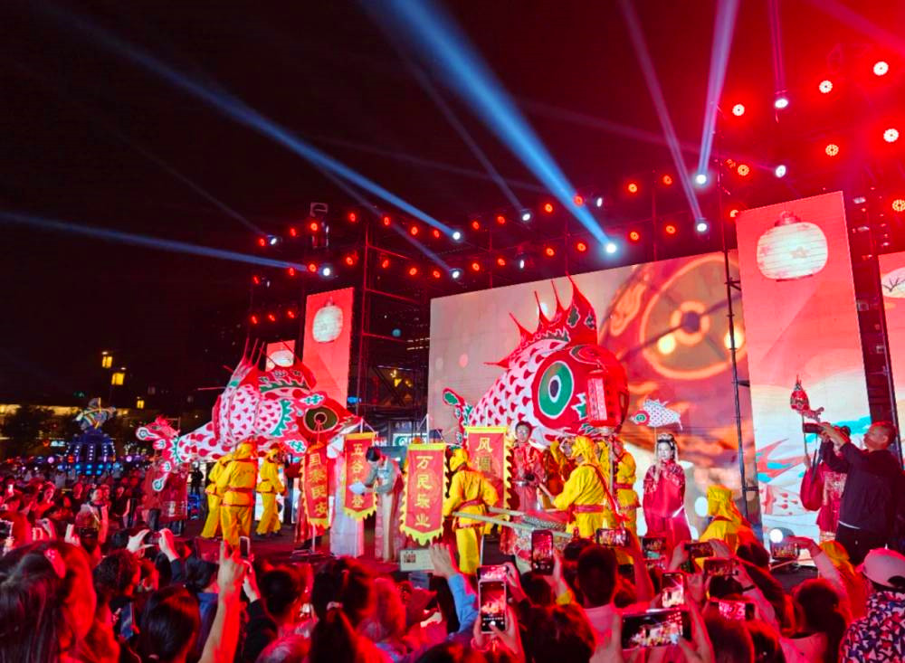 「摸摸魚頭來年不愁,摸摸魚身平安一生,摸摸魚尾順風順水。」夜幕降臨,在合肥肥西旭輝商場,群眾紛紛拿出手機拍照、錄像,記錄下這熱鬧喜慶的一幕,「太好看了」「節目好精彩」「好多魚燈」……表演者傾情演繹,觀看者如癡如醉。魚群在燈光的照耀下栩栩如生,傳遞着「年年有餘、吉祥如意」的美好祝願,讓遊客們親身感受到傳統民俗活動的樂趣,魚燈也成為節日裡一道亮麗的風景線。