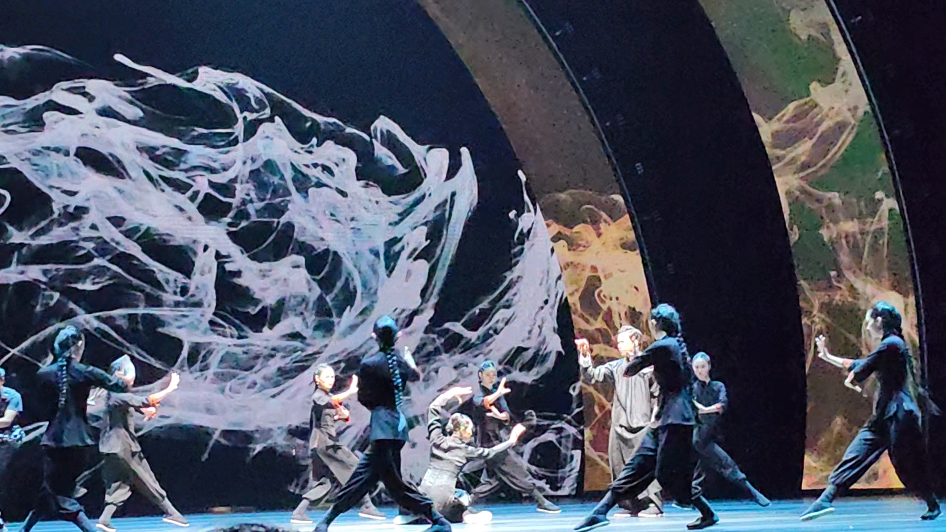 舞蹈《永和九年》的藝術靈感,則來源於東晉時期那場人們熟知的山中雅集。被譽為「書聖」的東晉書法家王羲之,在雅集中寫出了傳世名作《蘭亭集序》。上海歌劇院舞劇團的演員們用舞蹈之美展現了王羲之的書法藝術與文人情懷,也展現了中華美學與哲學思想的絕妙融合。