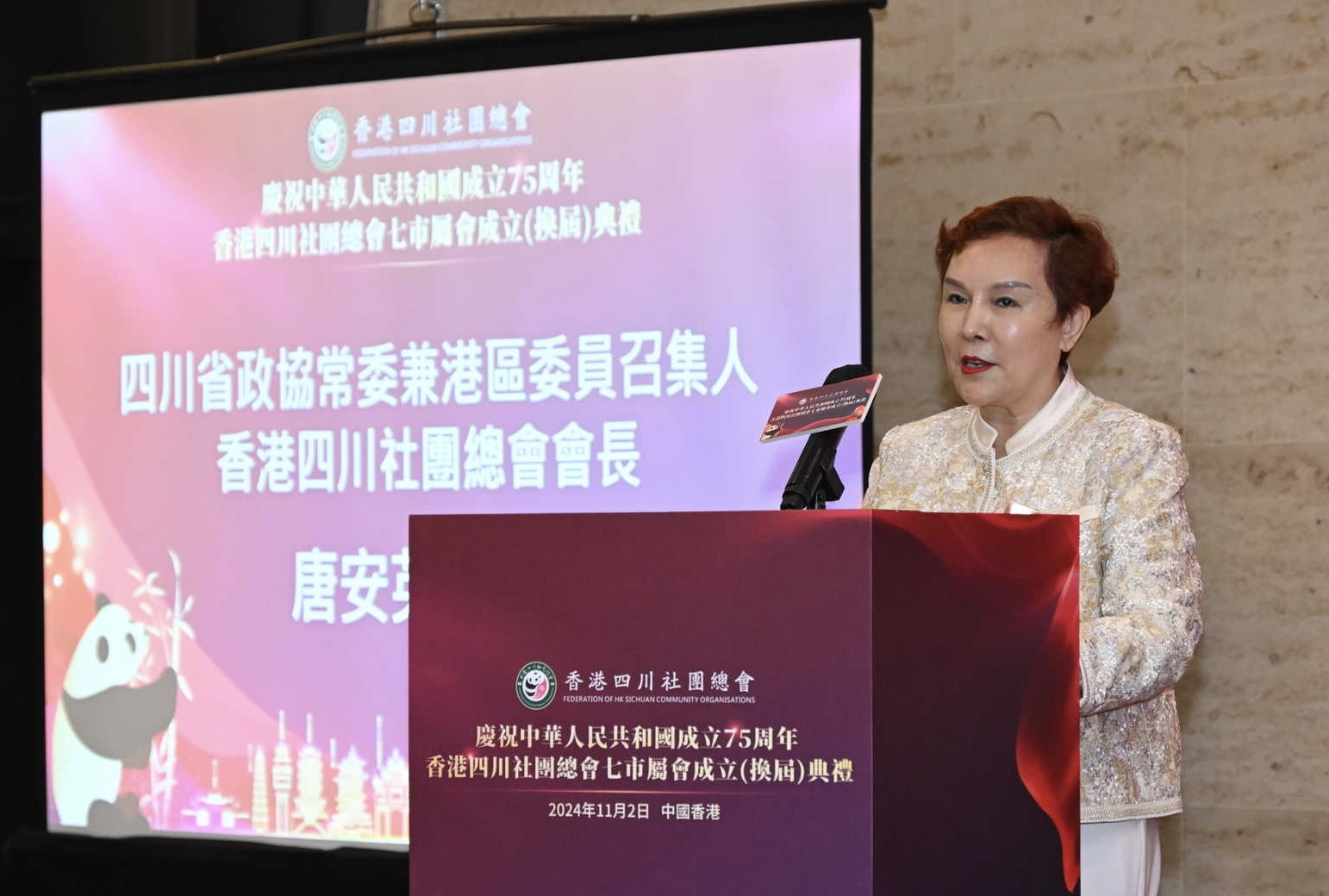 香港四川社團總會會長唐安英表示,今年總會先後舉行超過100場凝聚會員、擴大影響的活動,全力在香港宣傳推廣四川。隨着七市屬會的成立和換屆,必將吸引更多會員加入,為在港鄉親營造更加溫暖的大家庭。
