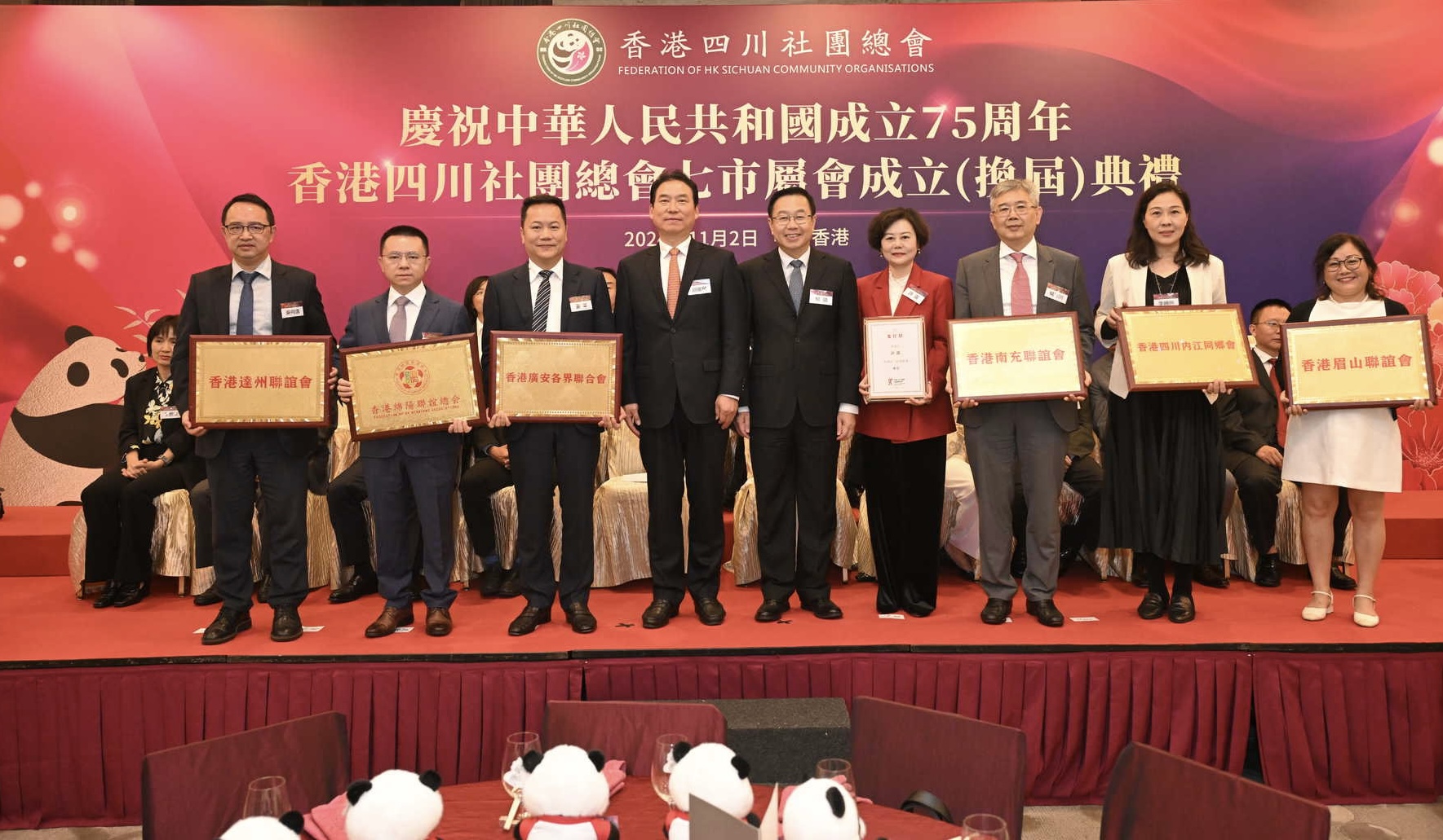 香港四川社團總會七市屬會成立(換屆)典禮2日在香港圓滿舉行。中聯辦副主任何靖,四川省委常委、統戰部部長趙俊民,香港四川社團總會會長唐安英,以及總會及屬會骨幹、在港川籍鄉親代表等200餘人出席,賓主聚首一堂,場面熱鬧。