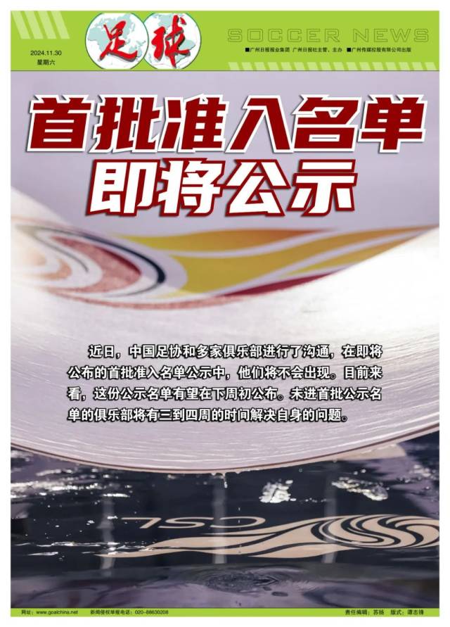 近日,中國足協和多家俱樂部進行了溝通,在即將公布的首批准入名單公示中,他們將不會出現。期間俱樂部方面一度有消息表示,公示名單會在11月29日公布,但最終延期,目前來看,這份公示名單有望在下周初公布。當然,未進首批公示名單的俱樂部有三到四周的時間解決自身的問題。
