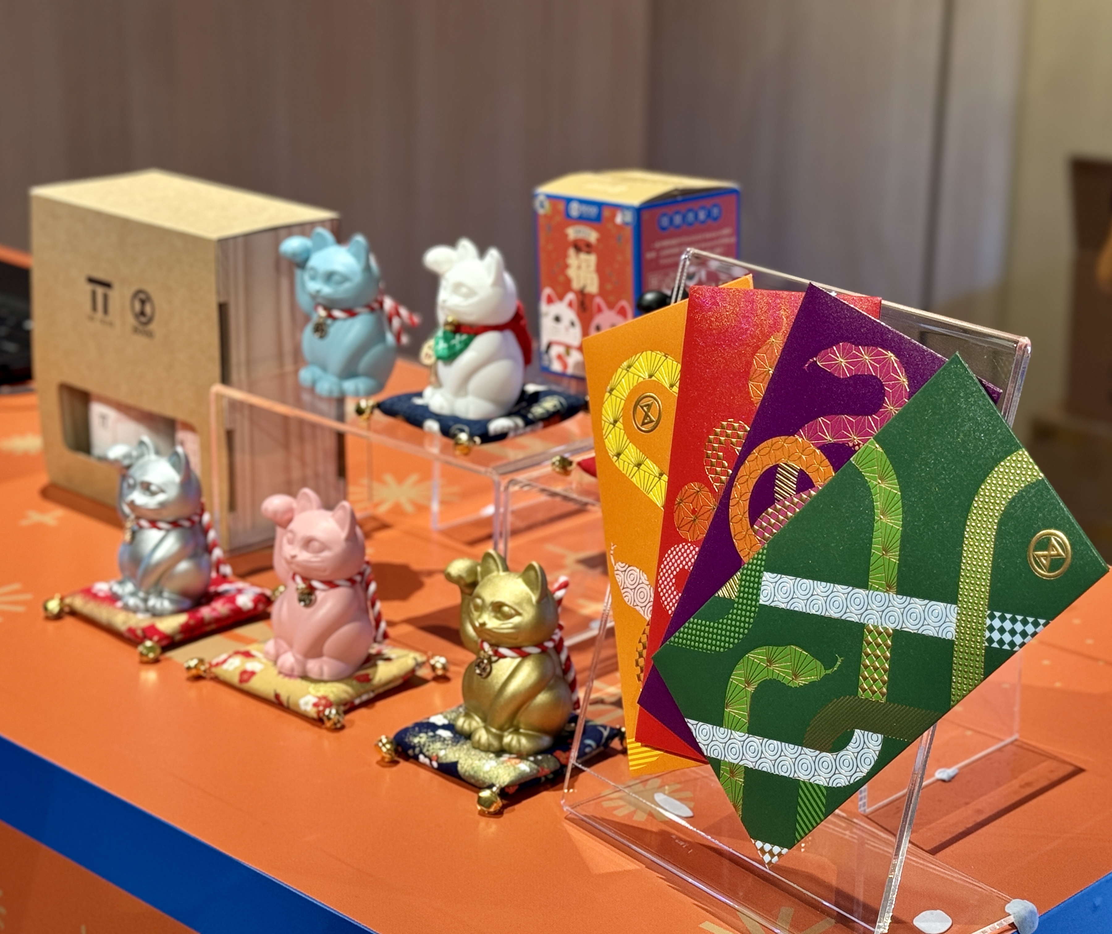 百貨會員消費滿指定金額,即可參加「招福金爪」夾扭蛋遊戲一次,禮物總值超過60萬元,當中包括 999.9足金金章、999.9黃金金豆、999.9黃金吊墜、20 萬Rewards額外積分、HK$500網店優惠券及HK$500餐飲現金券等禮遇。百貨並推出招福貓盲盒系列,分別有金、銀、黑、白、藍及粉紅色招福貓,加上隱藏版,七色招福貓各具寓意,消費滿HK$500即可以HK$68換購招福貓盲盒1個,或以HK$388換購招福貓盲盒1套(7個)。會員憑消費積分更可換購三款招福貓配飾物,為招福貓換上新裝。此外,會員凡於店內即日累積消費滿HK$600,即可獲贈一套8個蛇年主題利是封。(記者、攝影:Karena)