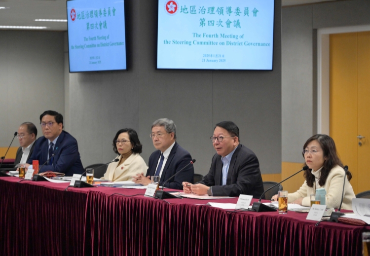 政務司司長陳國基今日(21日)主持地區治理領導委員會第四次會議,督導和指示各決策局及部門就地區關注的議題制訂應對策略方針,並跟進於首三次會議定下的8個重點地區項目的落實進度。
