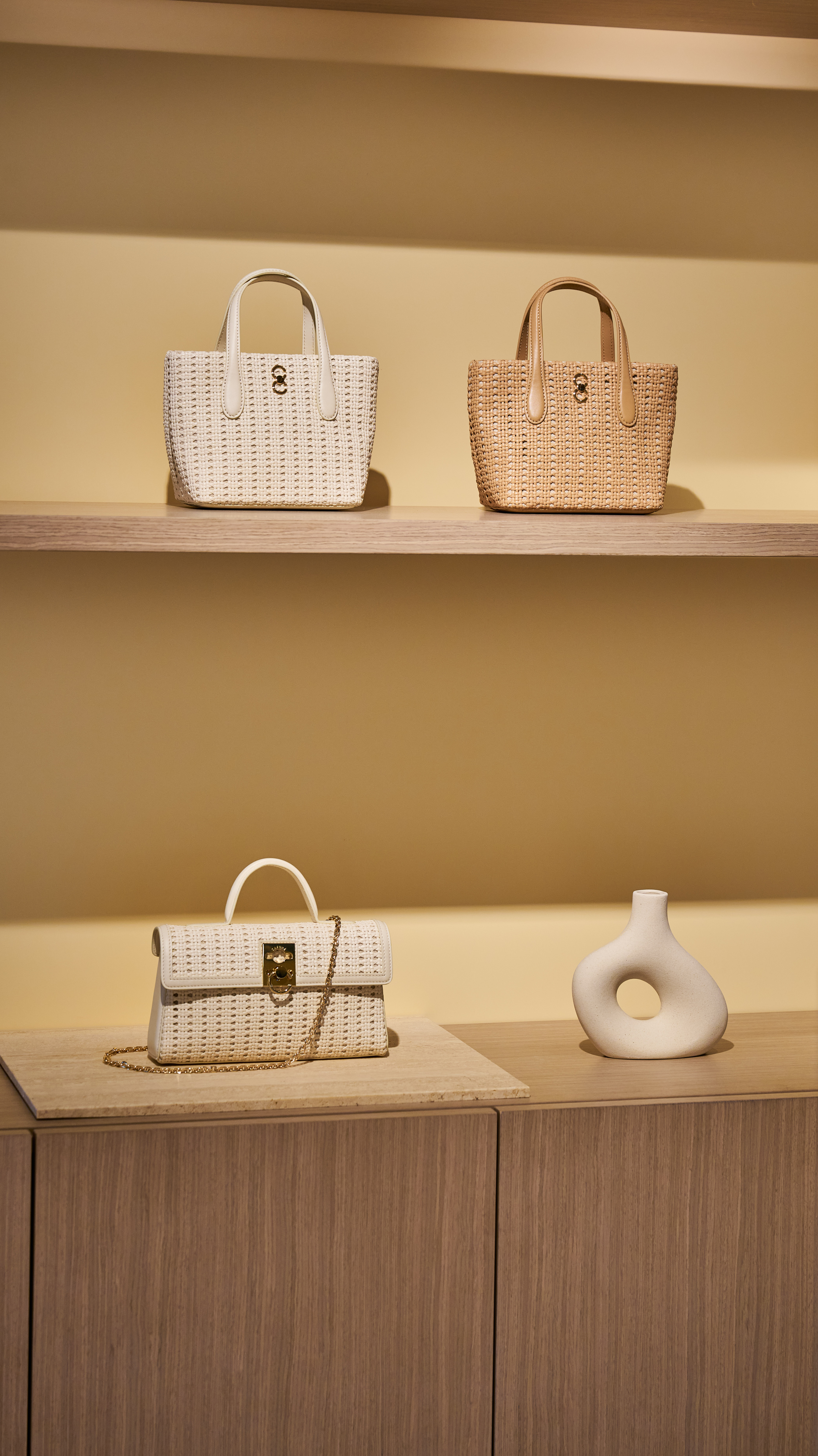 限定店位於商場一樓,延續品牌現代簡約美學,以簡潔線條與柔和色調打造。店內除展示品牌最新夏季系列外,並首度推出全新掛飾系列,兼具實用功能與時性。全新掛飾包括Micro Stance Charm、Egg Charm及Day Pouch,靈感源自品牌經典手袋設計。掛飾均選用意大利牛皮製作,內層為微絨裏布,提供小巧收納空間, 方便攜帶如耳機、鎖匙或零錢等細小物品。 Micro Stance Charm是經典Stance系列新成員,設計保留了C-Lock金屬扣, 並附有長皮繩,方便靈活地扣掛於各類包款,外觀優雅精緻,提供煙灰色和核桃色兩種配色,為手袋增添亮點。Egg Charm的靈感來自人氣系列Drop Duffel、Drop Hobo及Egg Bucket手袋上標誌性的「小金蛋」裝飾扣,蛋形輪廓趣致可愛,提供米白色、核桃色及奶油黃色選擇,造型玩味。Day Pouch原本為Day Tote系列的Day Pouch手袋掛飾,由於廣受好評以單品形式登場,造型極簡實用,為收納卡片打造,輕巧易取的特點契合現代快節奏生活。