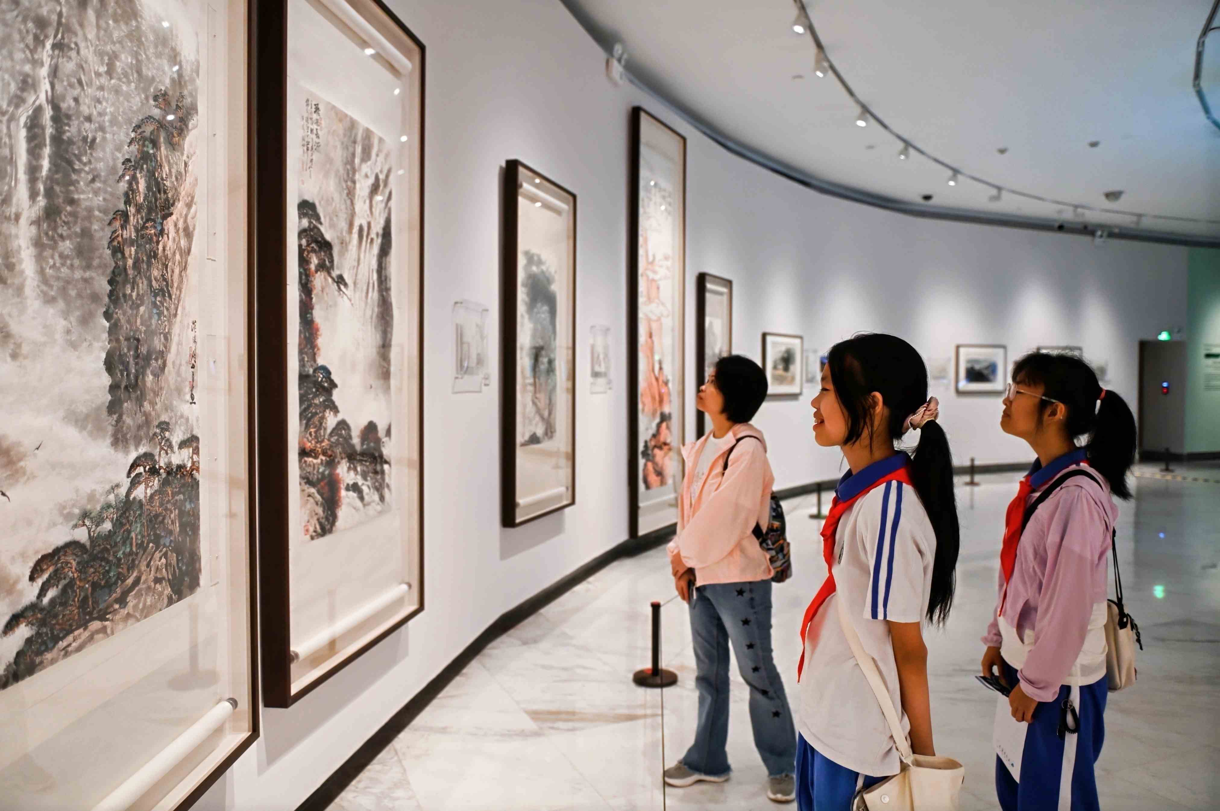 「走一走,看一看,歡迎來到關山月美術館,關山月老先生走遍祖國的大好河山,畫出了長長的秀麗畫卷,有山、有水、有海,小朋友你們都去過中國的哪些城市呀?」