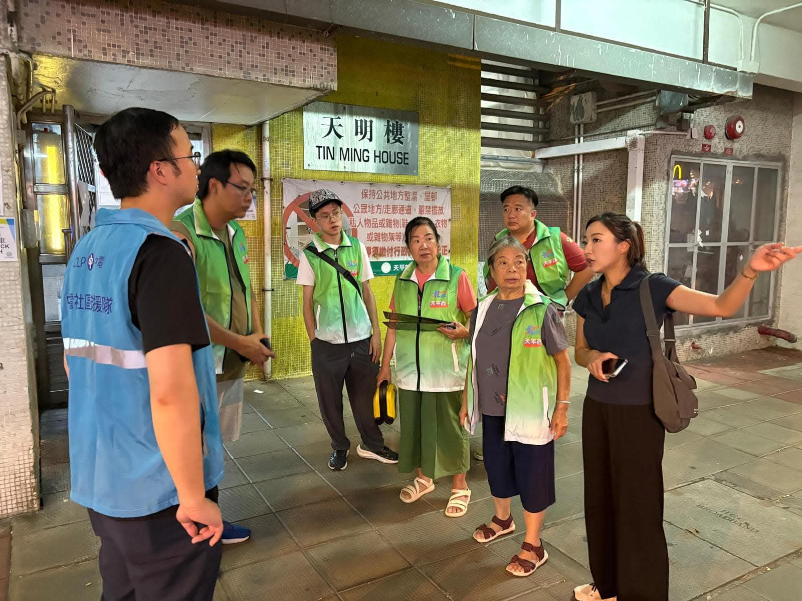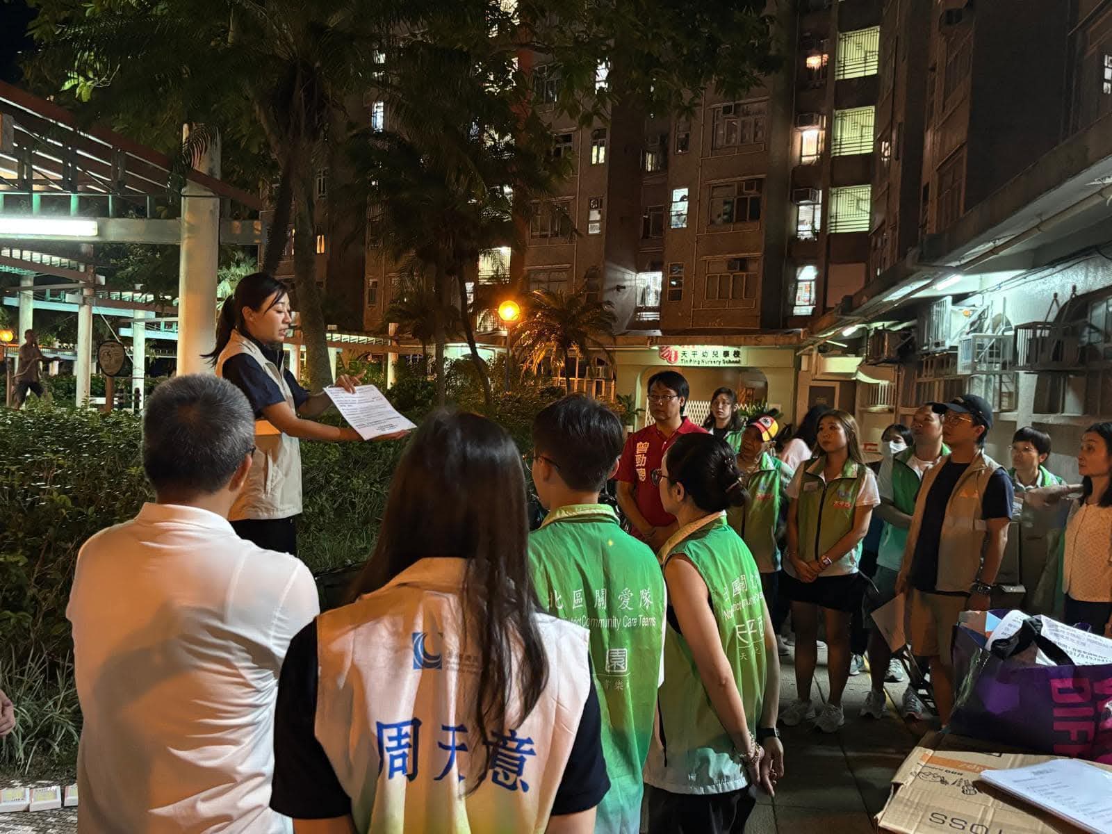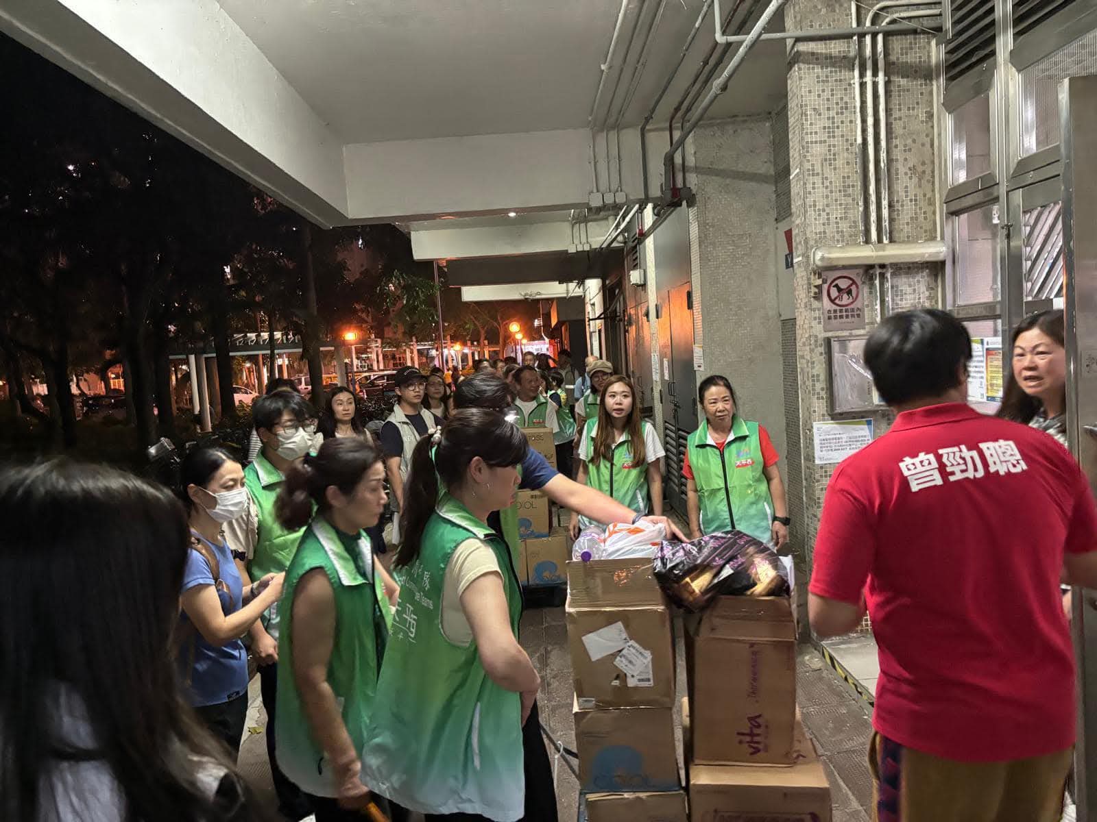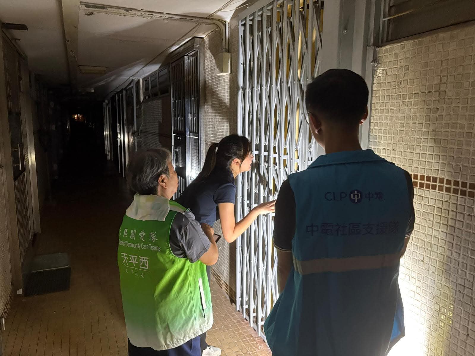 上水天平邨天明樓停電,北區民政處、區議員、關愛隊及政府部門全力支援居民。 民政事務總署供圖