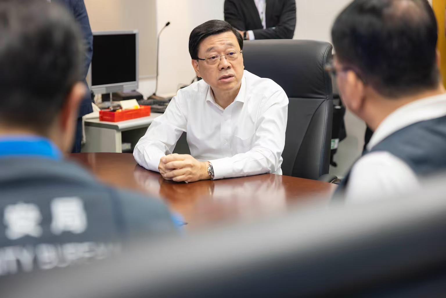 李家超與陳國基及鄧炳強開會 討論部署應對超強颱風「樺加沙」