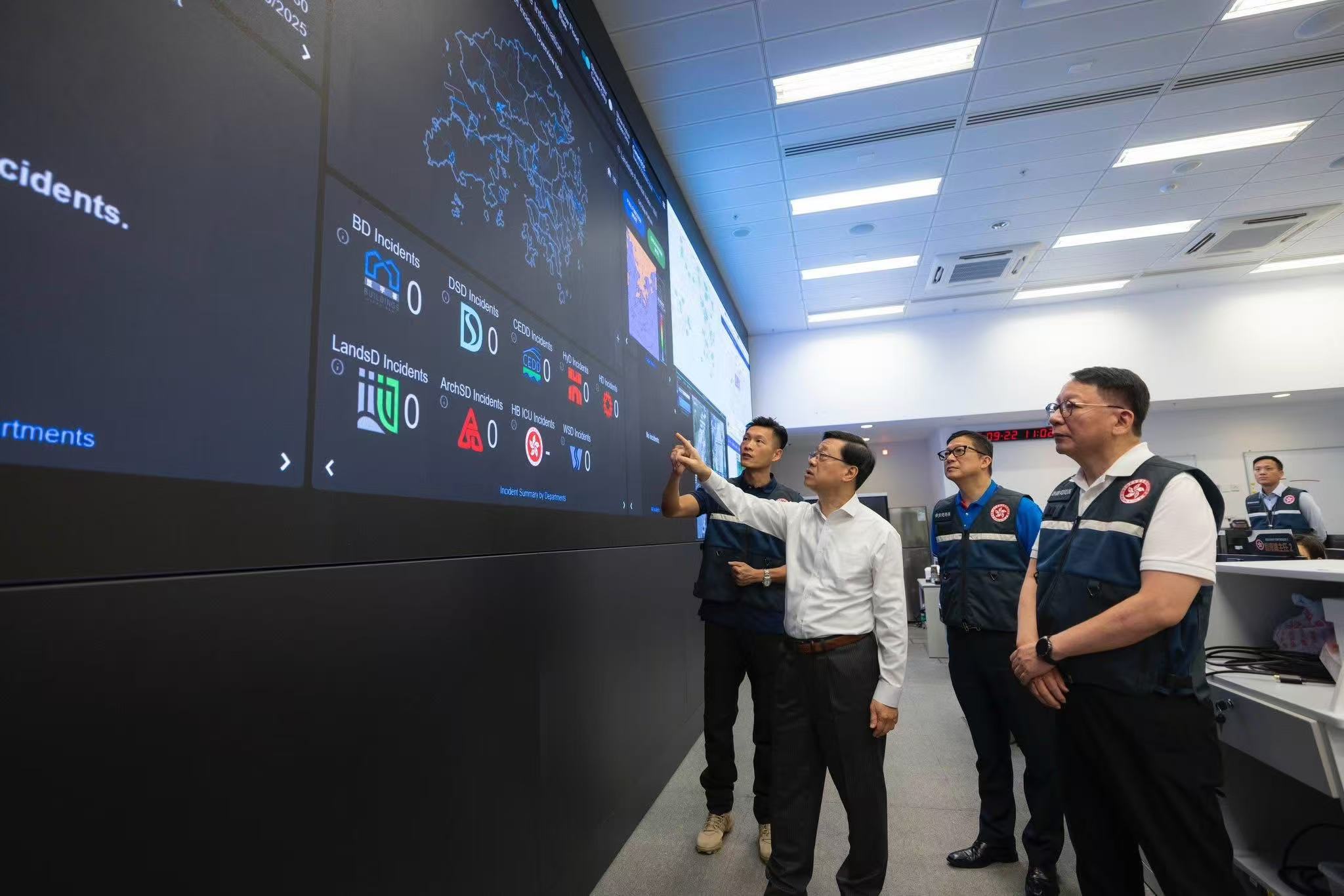 行政長官李家超今午(22日)在社交平台發文表示,超強颱風「樺加沙」逐漸逼近香港,對香港構成的影響很大可能達至2017年「天鴿」和2018年「山竹」的嚴重程度。為及早做好準備應對「樺加沙」可能帶來的影響,他特別指示保安局提早於今日上午啟動緊急事故監察及支援中心,預先做好統籌及應變部署。他今早亦到中心視察,聽取同事匯報各方面的部署情況,並與政務司司長陳國基及保安局局長鄧炳強舉行會議,深入討論不同部門的應對工作。