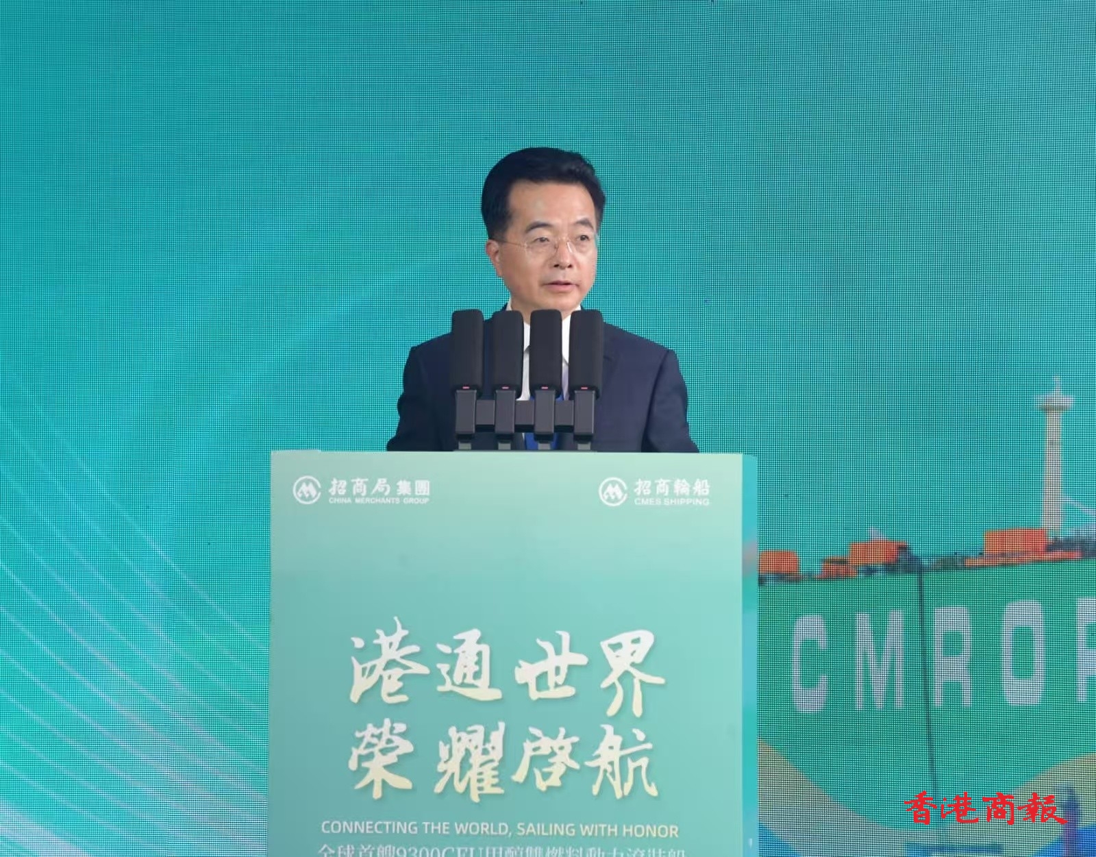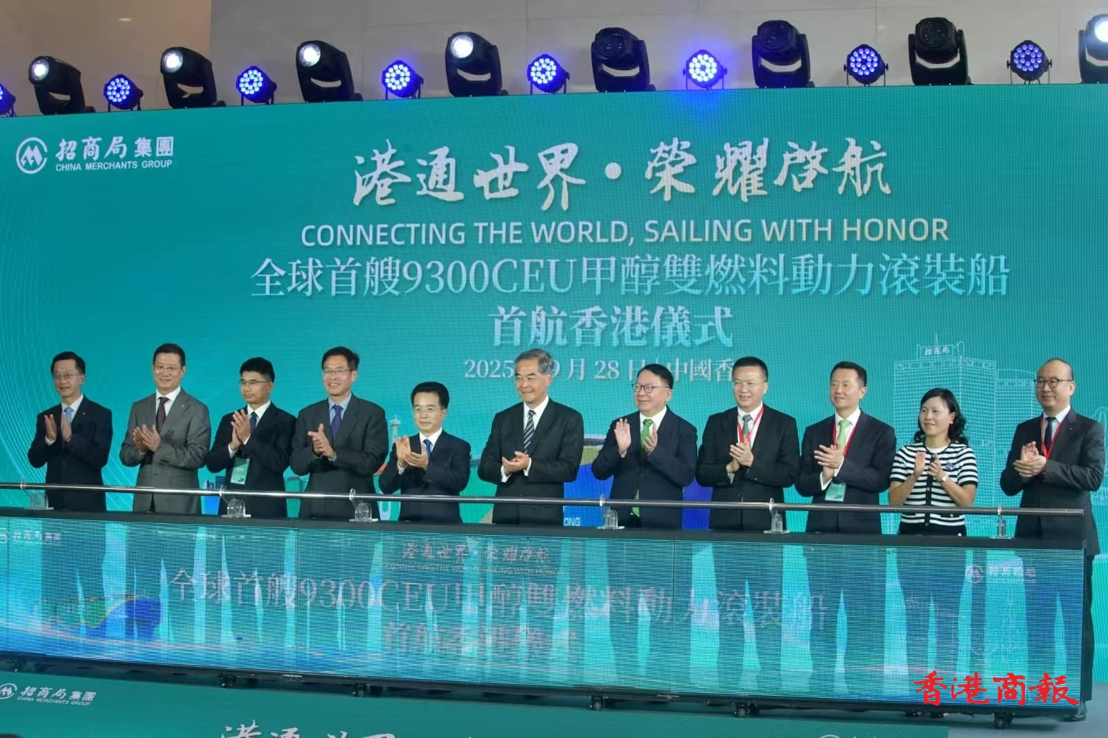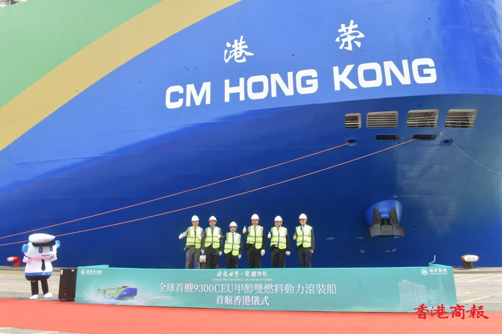 招商輪船:9300CEU甲醇雙燃料動力滾裝船首航香港儀式。圖:崔俊良攝