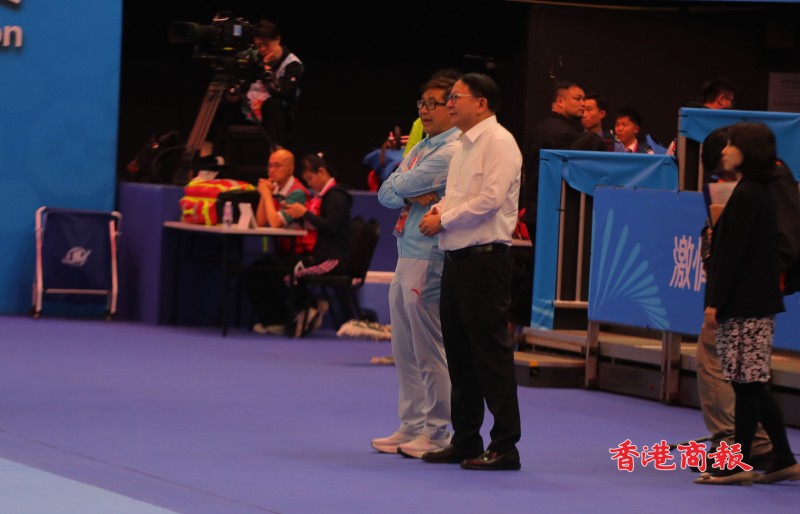 港隊實力不及人,但球員全場落力比拼,盡顯鬥志,今場賽事迎來兩位重量級嘉賓,分別是政務司司長陳國基,以及文化體育及旅遊局局長羅淑佩,兩人一齊前來紅館觀看球賽,為港隊打氣。羅淑佩睇波投入,每當港隊得分就是大力拍掌支持。完場後,陳國基未有即時離開,還特別上前鼓勵港隊球員,場面溫馨。(文、圖、片:志誠)
