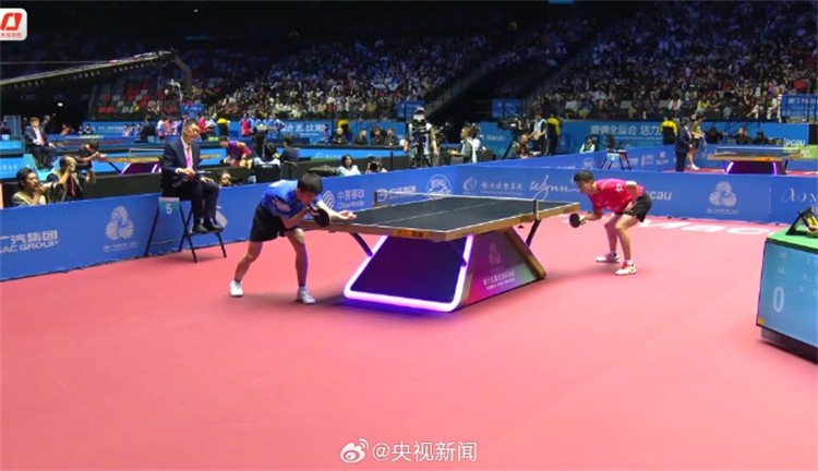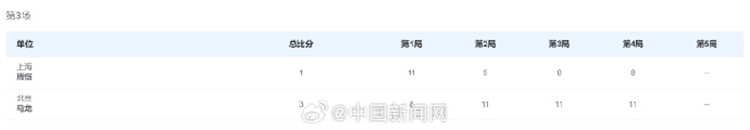 第十五屆全運會乒乓球男團小組賽A組比賽,北京隊對上上海隊。第三盤比賽中,北京隊馬龍戰勝上海隊周愷。