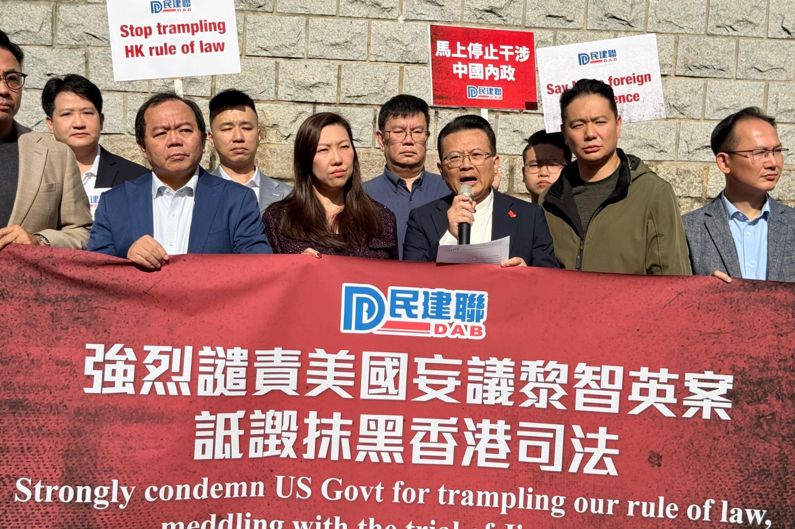 民建聯副主席陳勇、周浩鼎、陳學鋒、秘書長葉傲冬、副秘書長葉文斌、立法會議員林琳、陳永光、候任立法會議員郭芙蓉、植潔鈴、張培剛、洪錦鉉、陳博智,及多名民建聯區議員,今日(16日)到美國駐港澳總領事館請願,強烈譴責美國妄議黎智英案,詆毀抹黑香港司法。